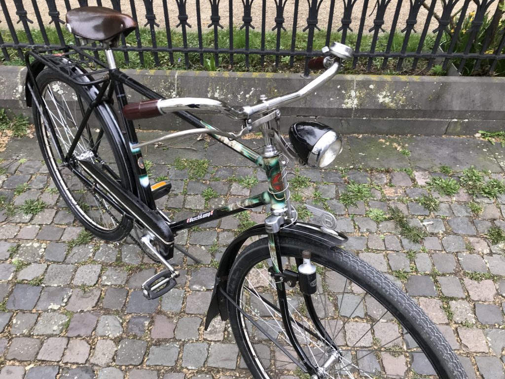 Werner: de gevonden B is inderdaad van Buschkamp .... maar was niet het embleem op mijn fiets; wel het wiel hieronder (en klopt volledig met het mijn afgebroken ding waarvan begin 'spaken' nog zichtbaar zijn :) ).