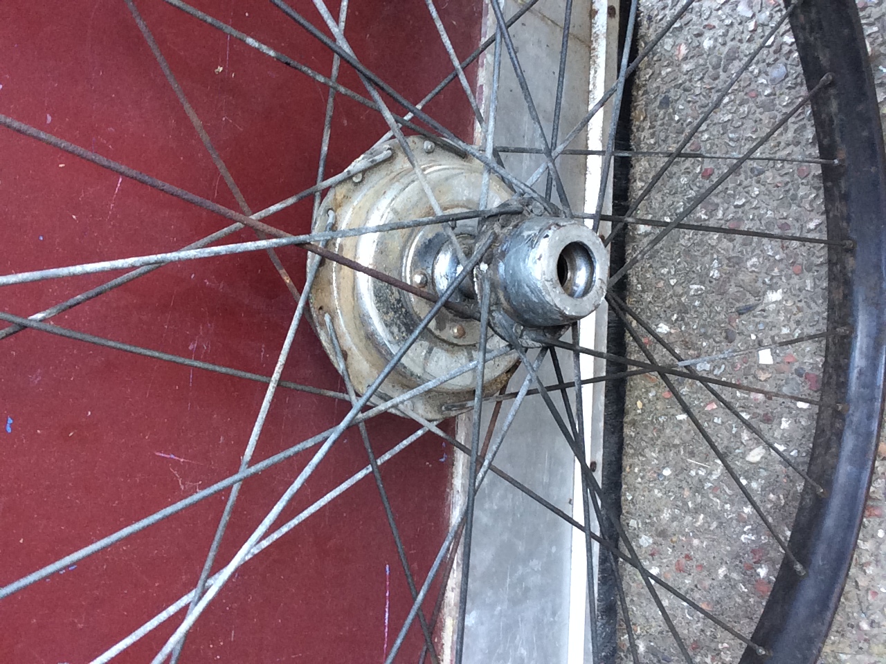 Orgineel horen beider wielen denk ik voorzien te zijn van een trommelrem, afwijkende maat 26 inch hier en daar nog verkrijgbaar.