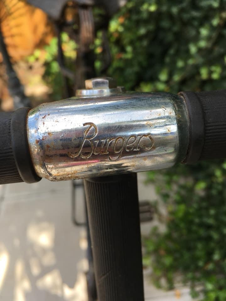 Mooi is ook het stuur. dat is ook van na de oorlog. (voor de oorlog stond er geen Burgers in gegraveerd). Chroom overtrokken met celluloid zie je niet vaak. ik ken het van Gazelle en Burgers.