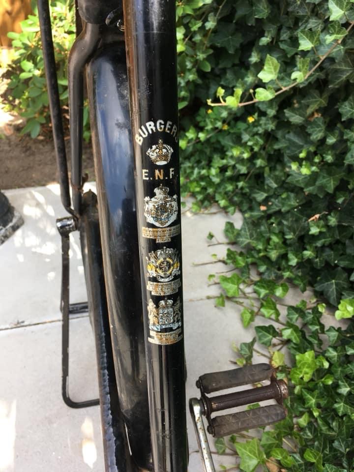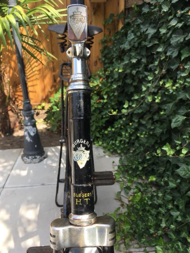 Burgers zette op de balhoofdbuis de naam "burgers" altijd bovenaan en de modelnaam onderaan. Hier staan beide onderaan. nog een aanwijzing voor het werk van een grossier. Ik ken de modelaanduiding HT ook niet uit de catalogi. wellicht staat het voor Heren Tour?