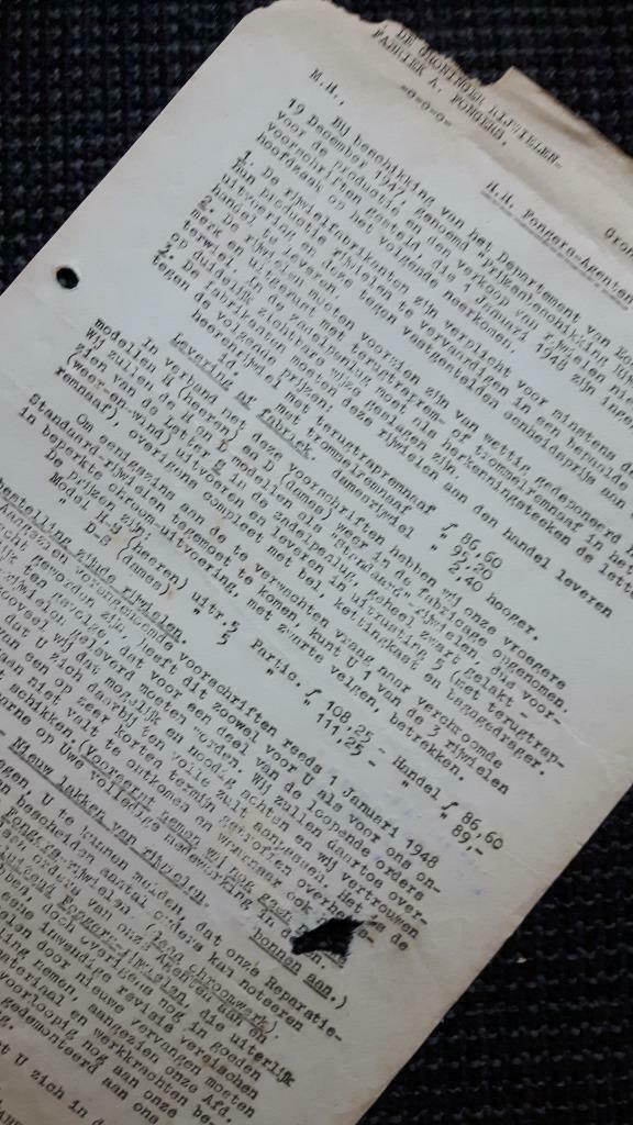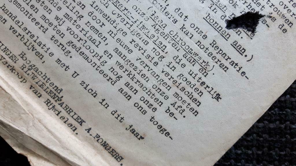 over reviseren dat ze niet konden verchromen (waarschijnlijk door materiaal schaarste) en dat de dealer de fiets uit elkaar diende te nemen en