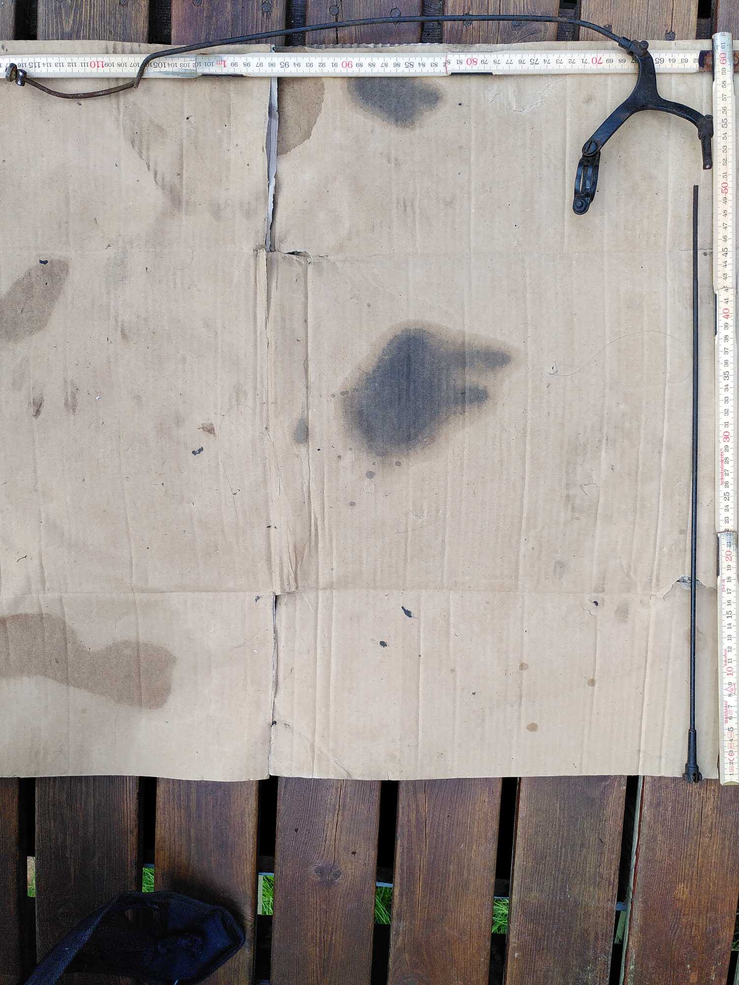 Hardstikke fijn als je iets zou hebben. De remstang schuin naar het bracket is 550 mm, die naar het achterwiel is (was) 500 mm. Het Y stuk heeft ook een klap gehad,maar die krijg ik denk ik wel weer recht. Ik zou er echt heel blij mij zijn !