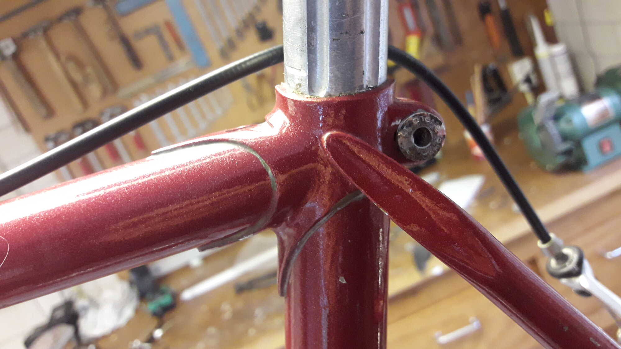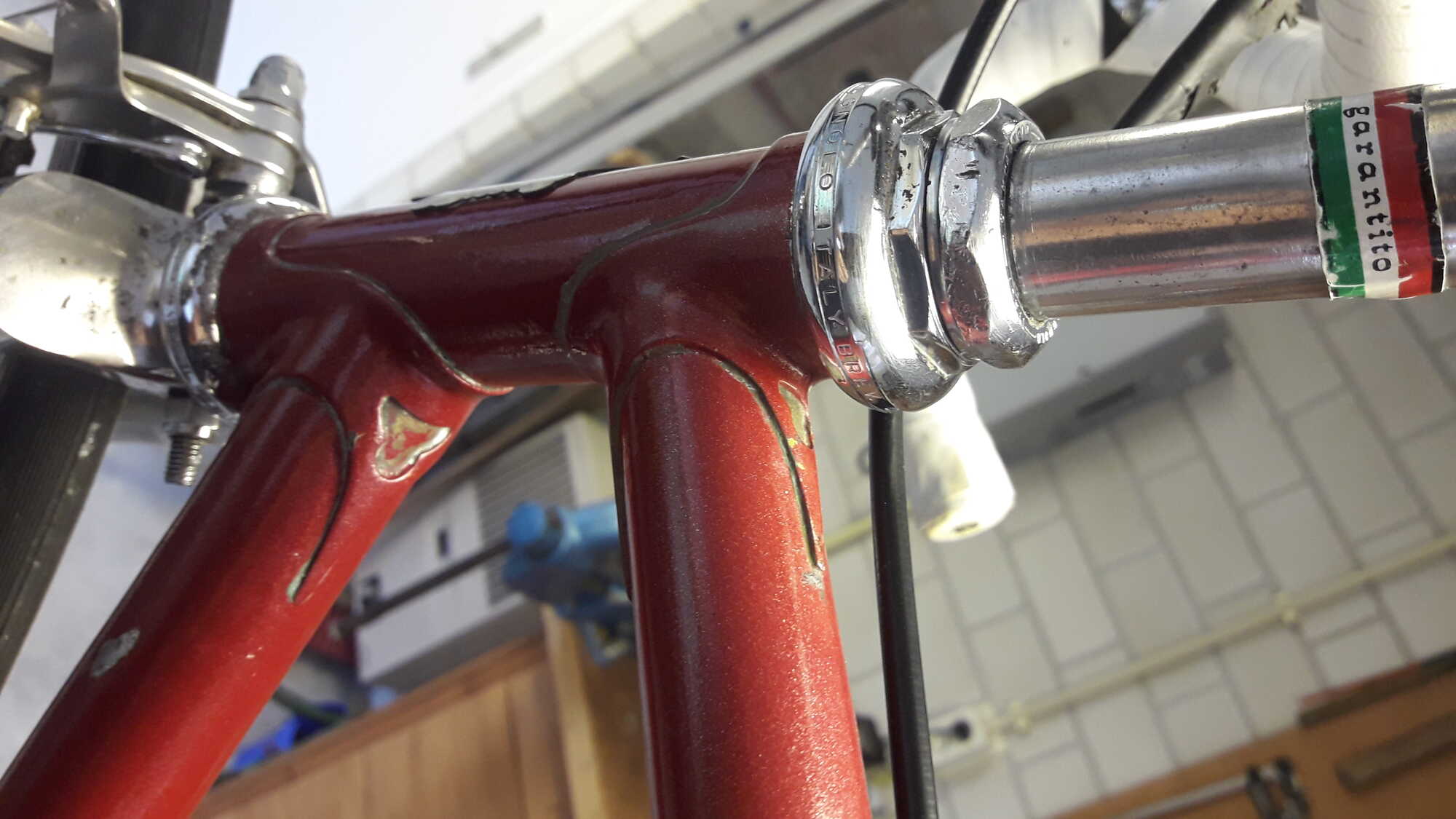 De uitsparing in de lugs (het "omgekeerde hoedje") is kenmerkend voor frames van Tecnotelai uit Bologna.