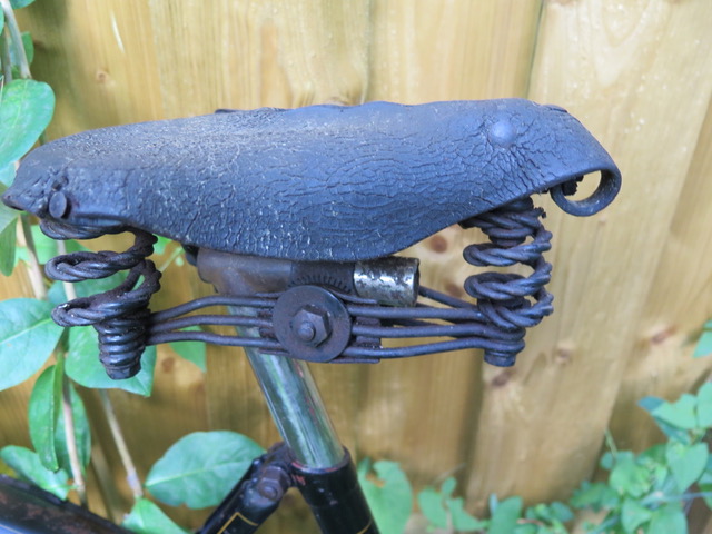 Hierbij een foto van het zadel. Ik denk dat het origineel uit 1912 is. na 1920 kreeg je het driehoekje in het logo.