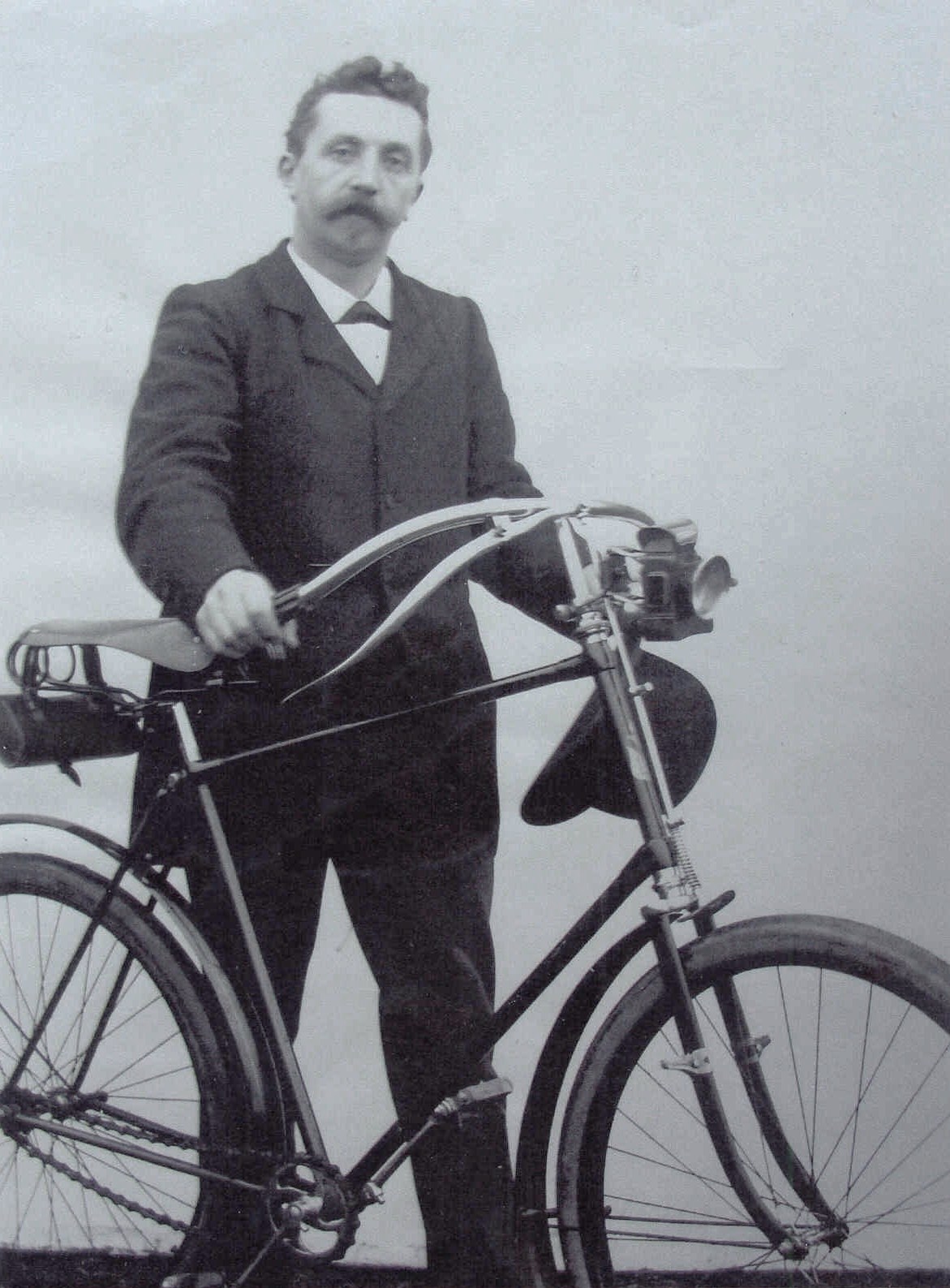 Ik vond gisteren op Ebay nog een Engels rijwielmerk met een vergelijkbaar transfer; The Battery Cycle Works. Established 1892.