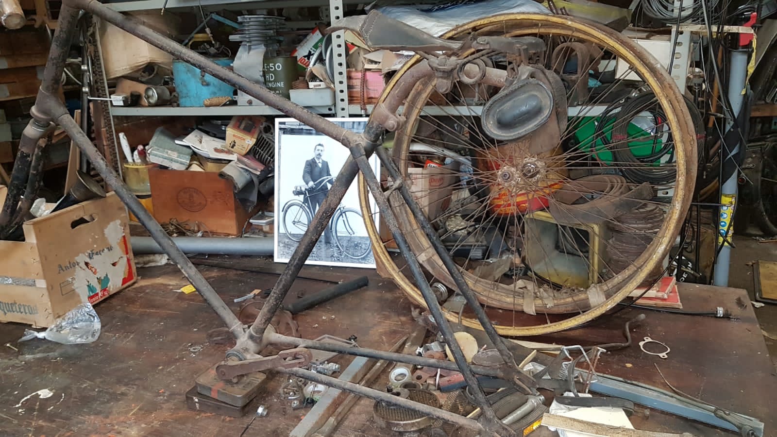 Daarop staat een fiets met de zelfde kenmerken als op de foto met man.