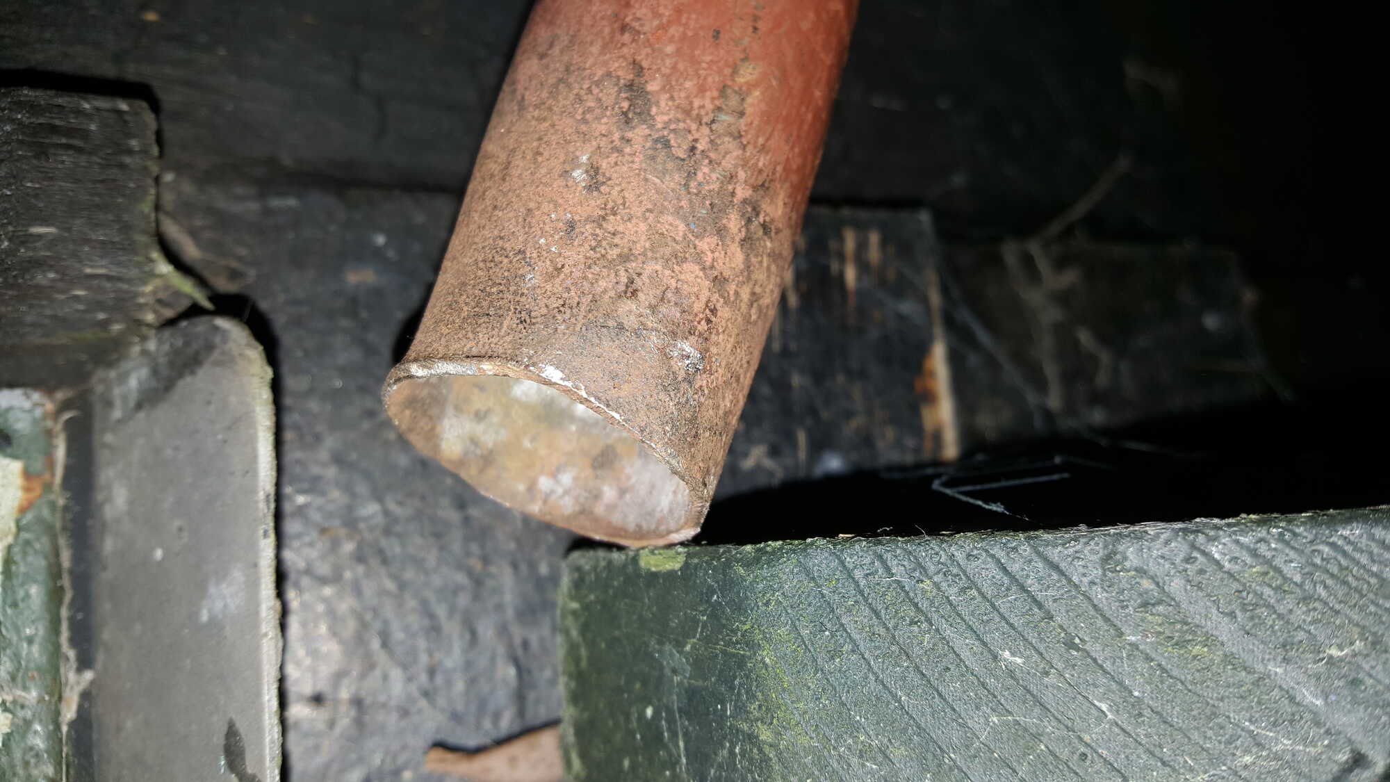 De pijp is gevuld met zand en zit opgesloten doormiddel van twee stevige proppen.