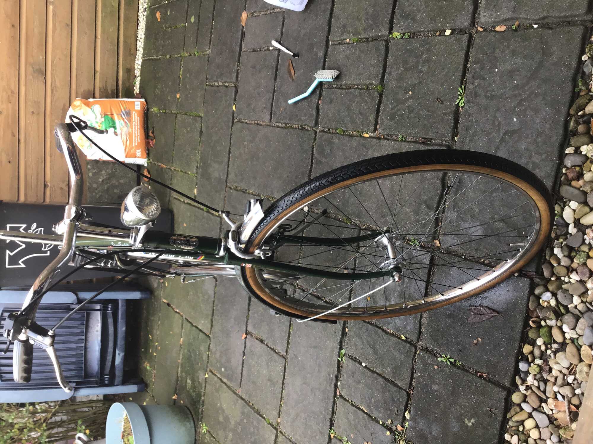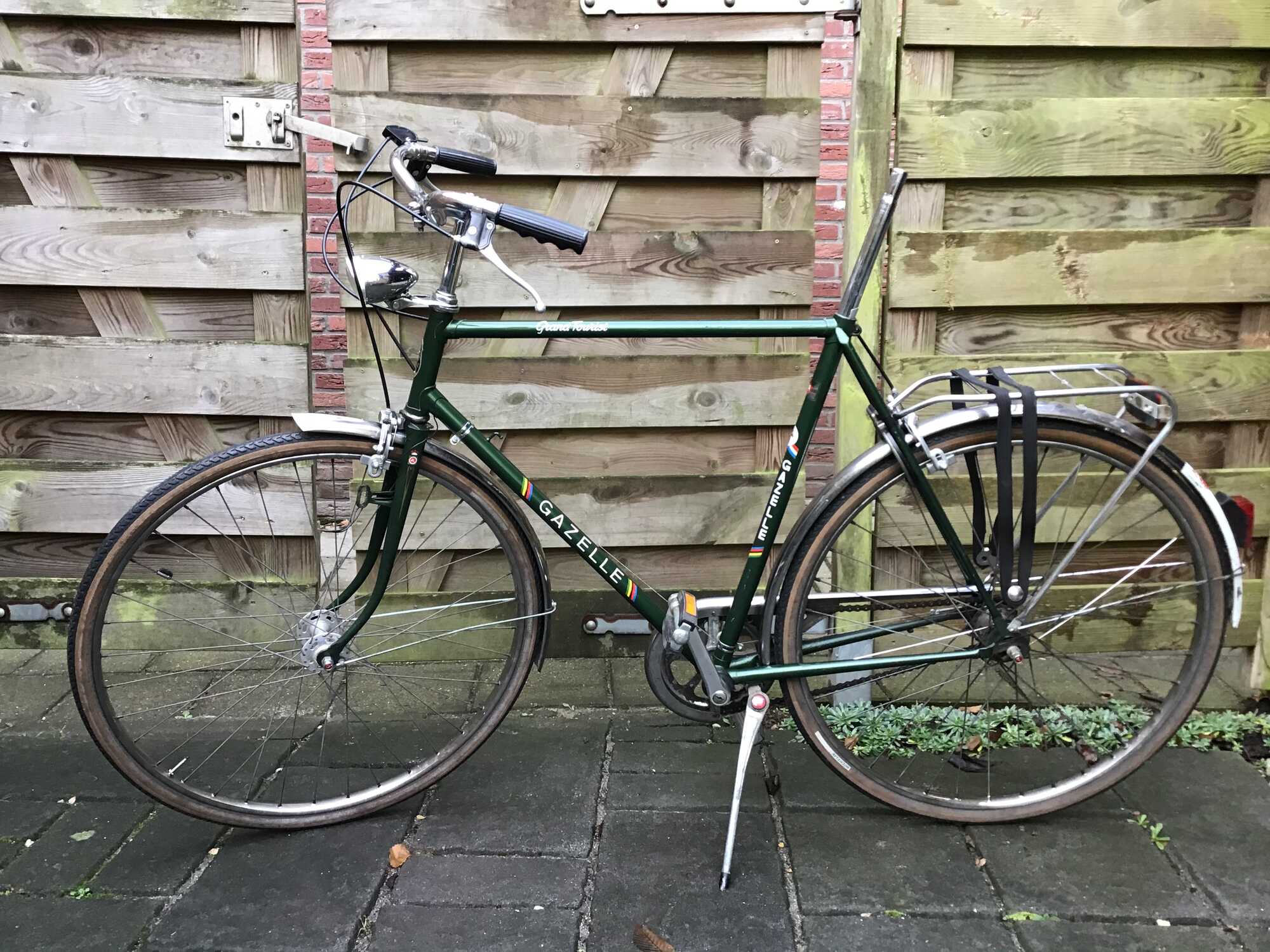 Ik heb deze Gazelle Grand Tourist, het zustermodel van de Gazelle Tour de France, een paar jaar geleden gekocht via Marktplaats en dit is mijn eerste fiets geweest waar ik echt wat meer aan geklust heb en dingen mee heb uitgeprobeerd. De maat is eigenlijk net te klein voor mij, maar aangezien ik klassieke fietsen graag enigszins moderniseer en toch in klassieke stijl houd wilde ik deze ook nog een grote beurt geven. Waarschijnlijk gaat deze in de verkoop, misschien houd ik hem toch zelf als fiets om gasten en vrienden op te laten rijden. We zullen zien.
