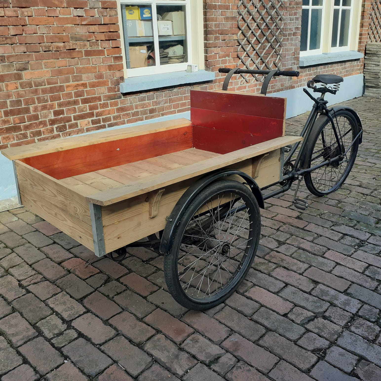 Ik heb een projekt te koop, een Juncker uit 1948. De fiets is helemaal compleet maar moet gestraald/geschuurd en dan gespoten worden. De zijwielen heb ik wel al perfect, nieuwe lak en nieuwe spaken en lagers. De stuuras heeft nieuwe lagers en kogels nodig, maar die heb ik erbij. De bak is de originele houten bak in redelijke staat, deze zou je kunnen vernieuwen, of zo laten. Wat er verder moet gebeuren is de trapas van nieuwe kogels voorzien en nieuwe spatborden zoeken en erop zetten.