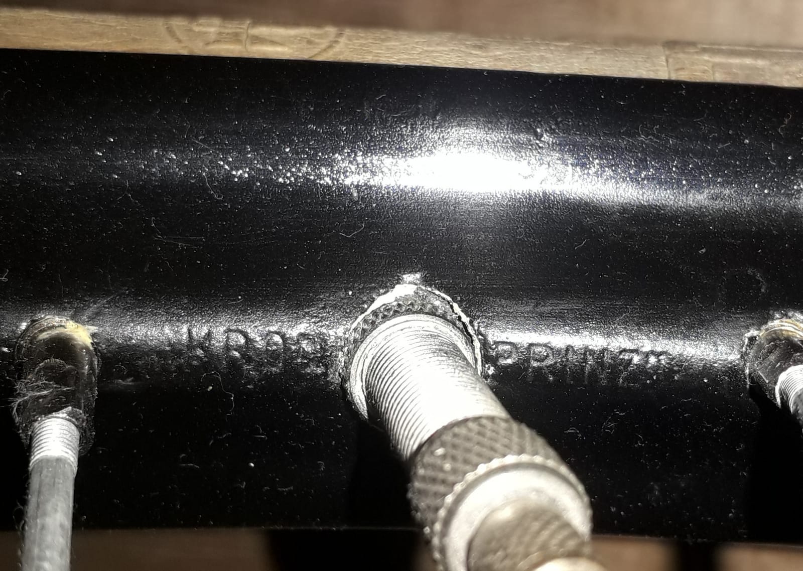 Onder de lak zijn geen sporen van nikkel of chroom te vinden en ook geen slijtsporen van velgremmen.