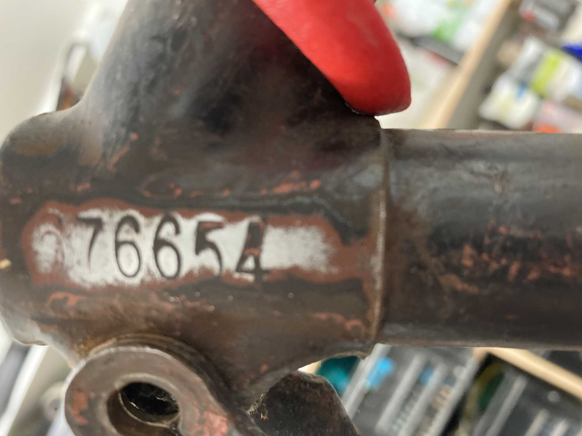 Na thuiskomst heb ik geprobeerd het framenummer te achterhalen. Deze zat goed verstopt onder een dikke laag verf. Na wat voorzichtig schuren kwam nummer 676654 naar voren. Met de info die beschikbaar is van Gazelle zelf kom ik uit bij bouwjaar 1942. Klopt dit of zou ik de tabel anders moeten lezen?
