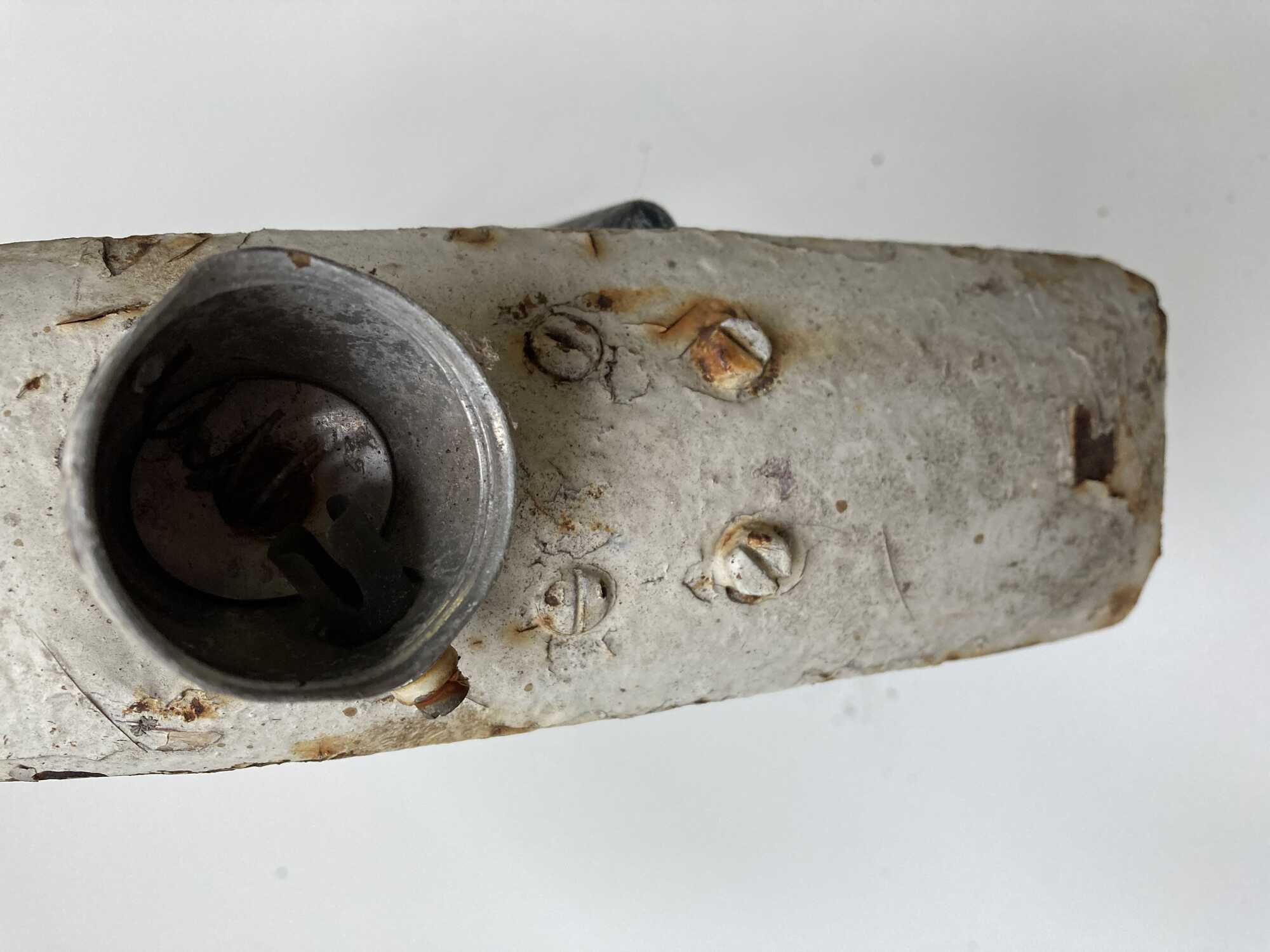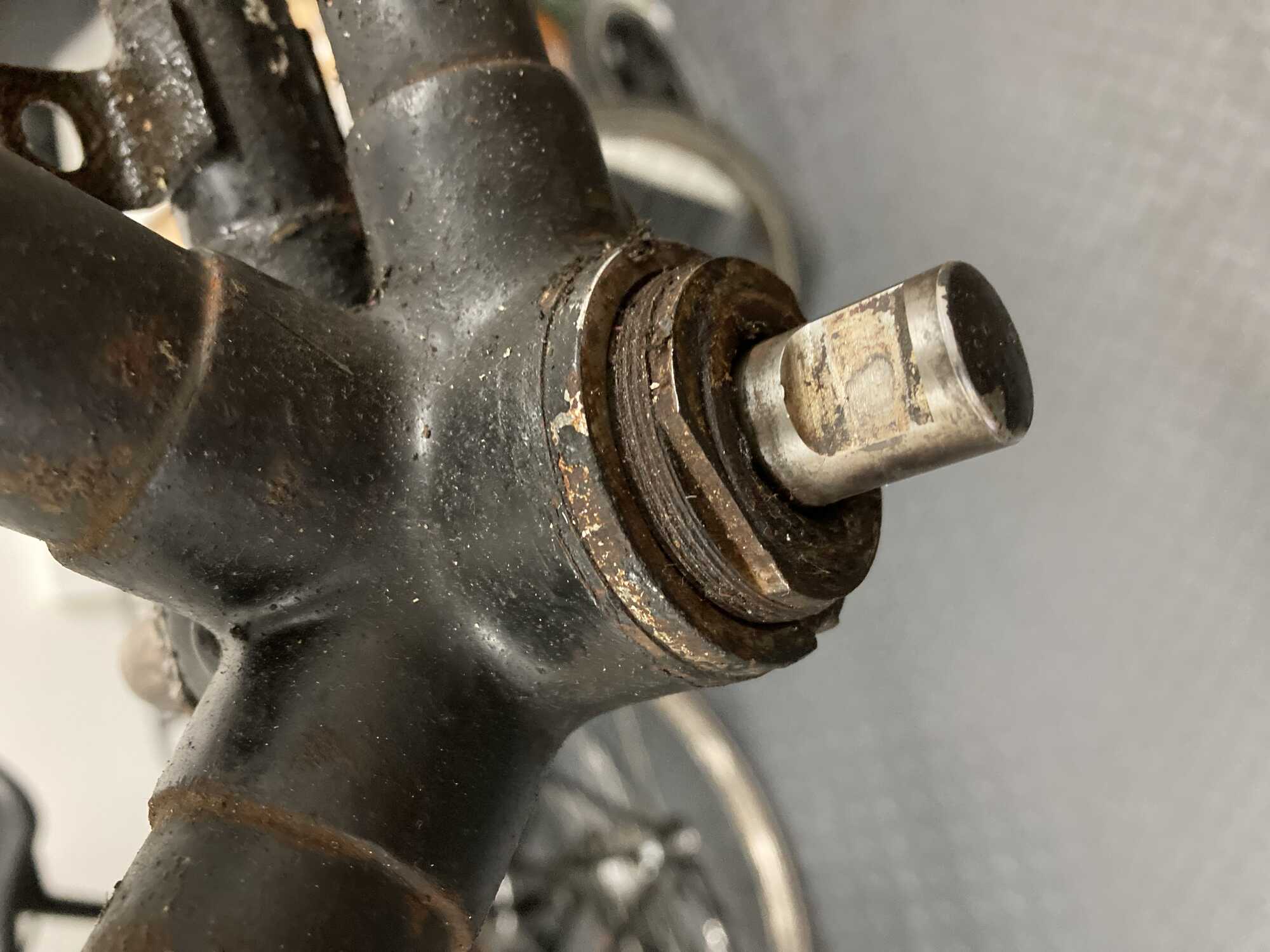 - Bracket lijkt voorzien te zijn van twee ingeslagen bussen met draad waar de trapas in geschroefd zit. Geen idee of dit origineel is. Kan iemand daar uitsluitsel over geven?