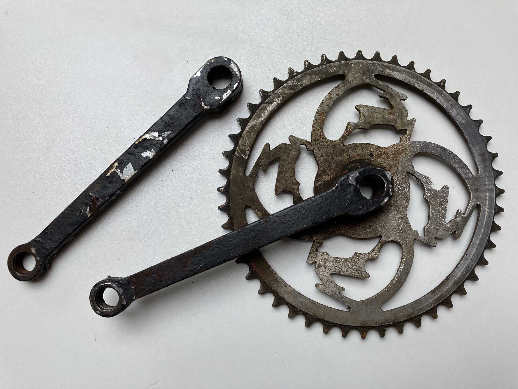 Wat ik ervan weet, hadden Gazelle spatborden een profiel, aan de zijkanten een ribbel. Het kan zijn dat dit anders bij fietsen die verder teruggaan dan die uit mijn herinnering. Normaal gesproken zou ik het jammer vinden een zeldzame fiets uit de Tweede Wereldoorlog tot pathracer te vermaken. Als er toch al weinig onderdelen meer origineel zijn, kan het toch logisch zijn om zo nog zin te geven aan het frame. De aantasting van het chroom van de crank en alle andere verchroomde onderdelen is te herstellen.