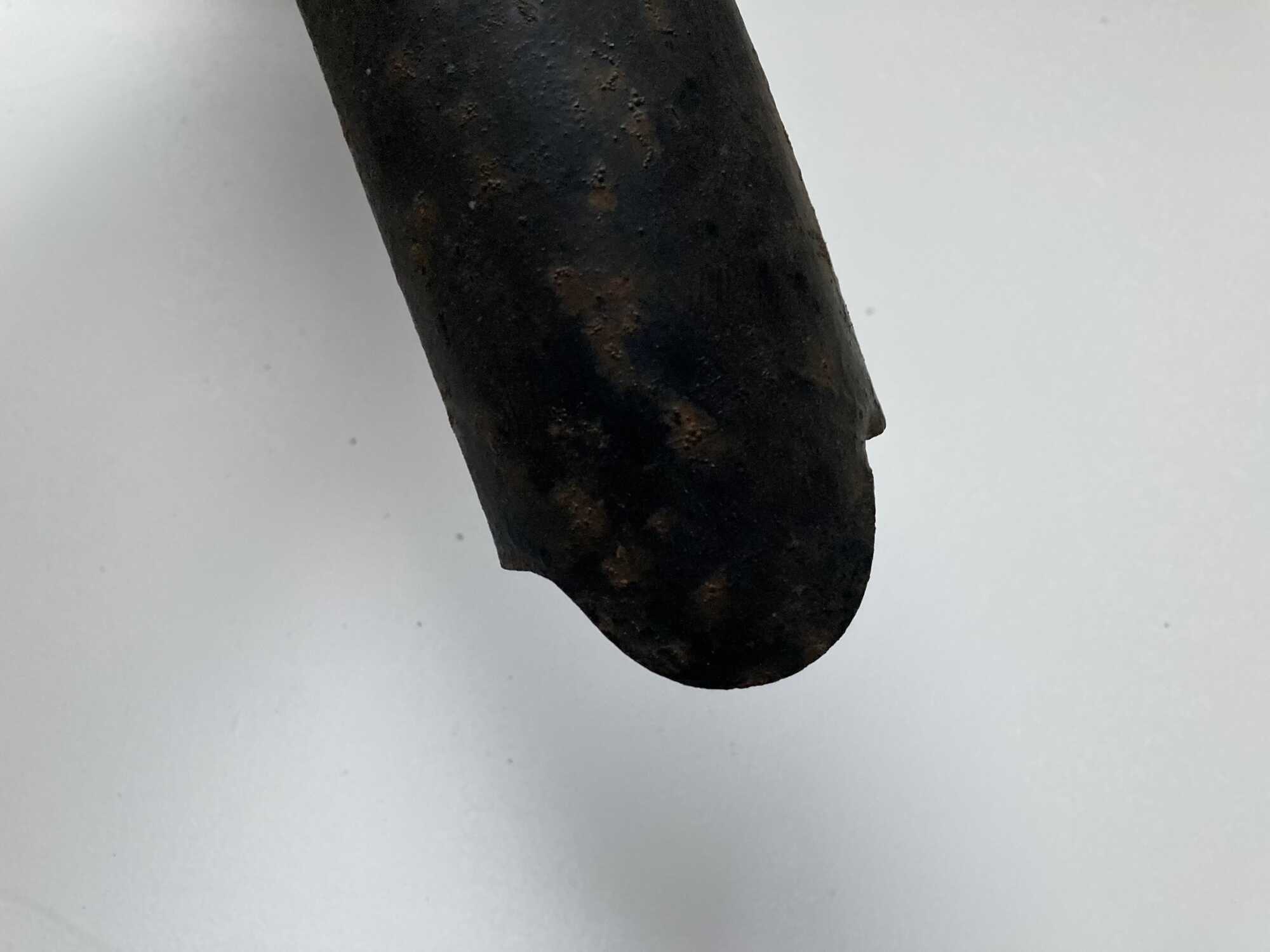 - De as is 139,5 mm. lang met een diameter van 16,6 mm. Op de as staat een ‘A’, een ‘7’ en een ‘5’. Verder geen codering o.i.d. De lagerbanen op de as zijn hier en daar aangetast door roest.