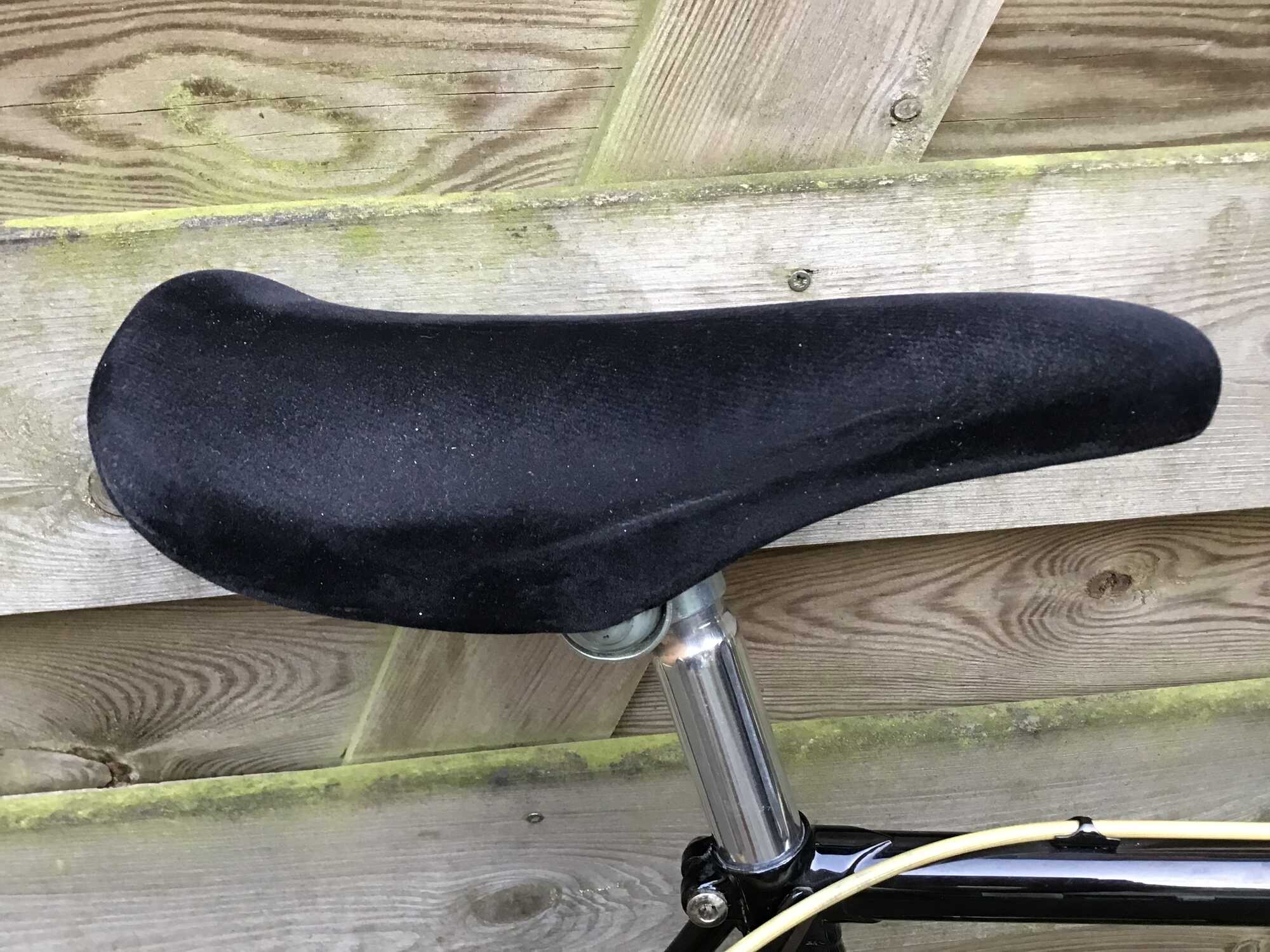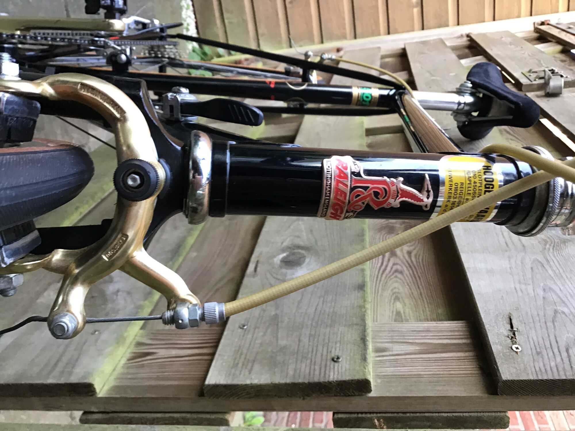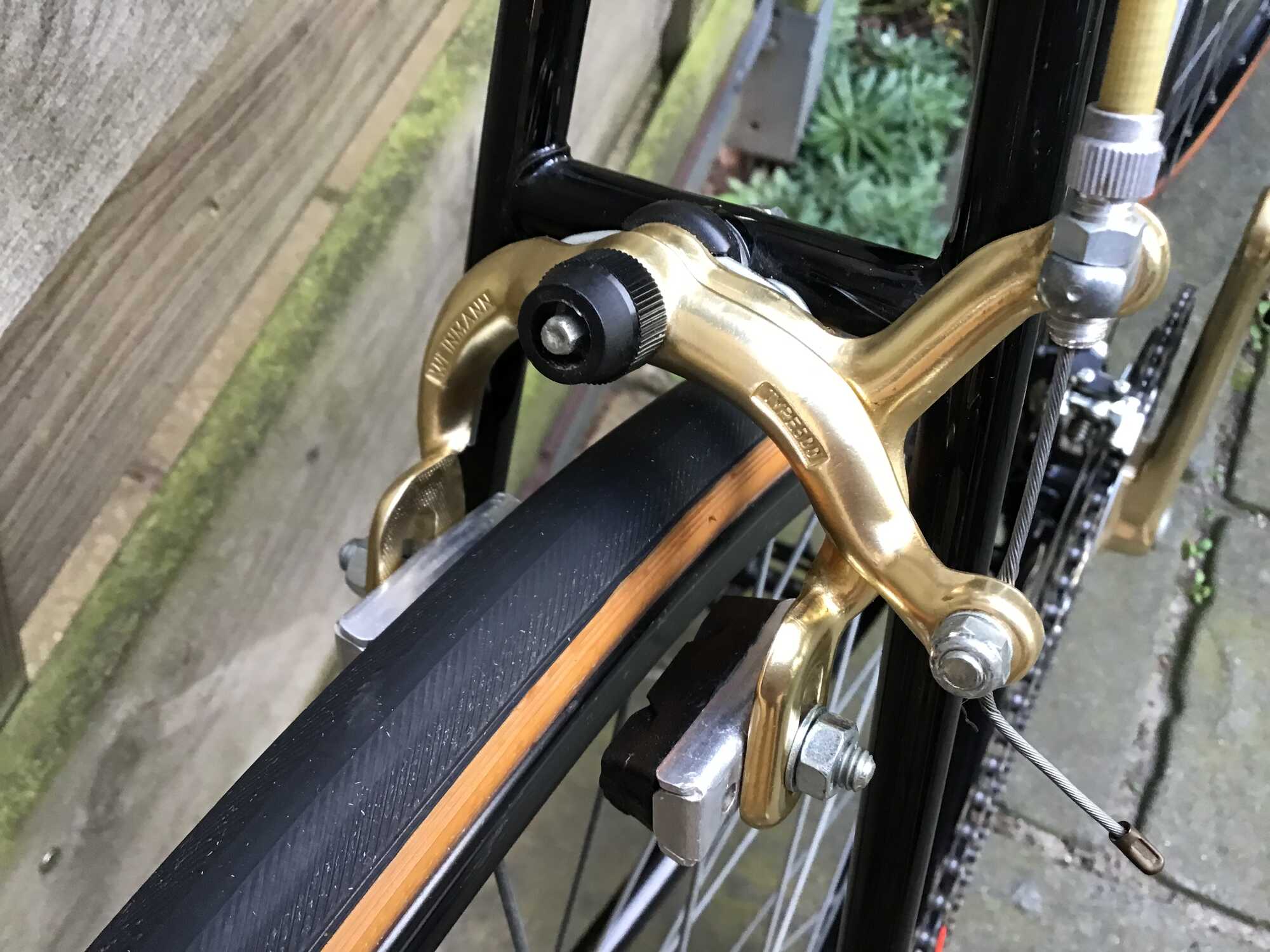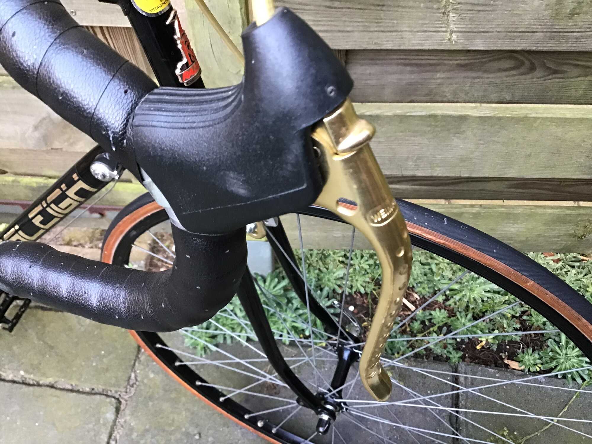 Sinds kort heb ik deze 36 jarige “schoonheid” in mijn bezit. Nog te jong om als oude fiets gekwalificeerd te worden, maar ja. Na het poetsen en schoonmaken kwam er een heel mooi fietsje tevoorschijn. De remmen, remgrepen, crankstel en stuur zijn goud geanodiseerd. De lak verkeert in sublieme staat. Hij is mij helaas te klein.
