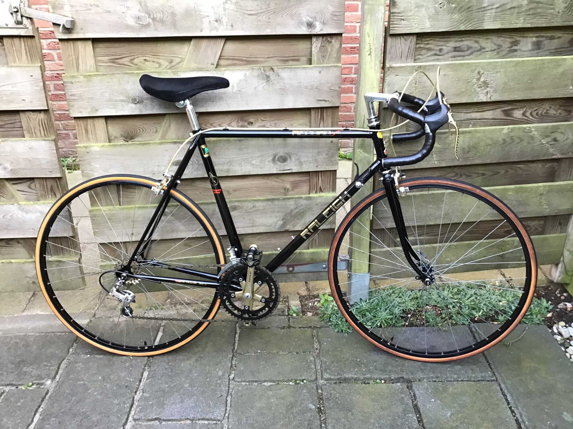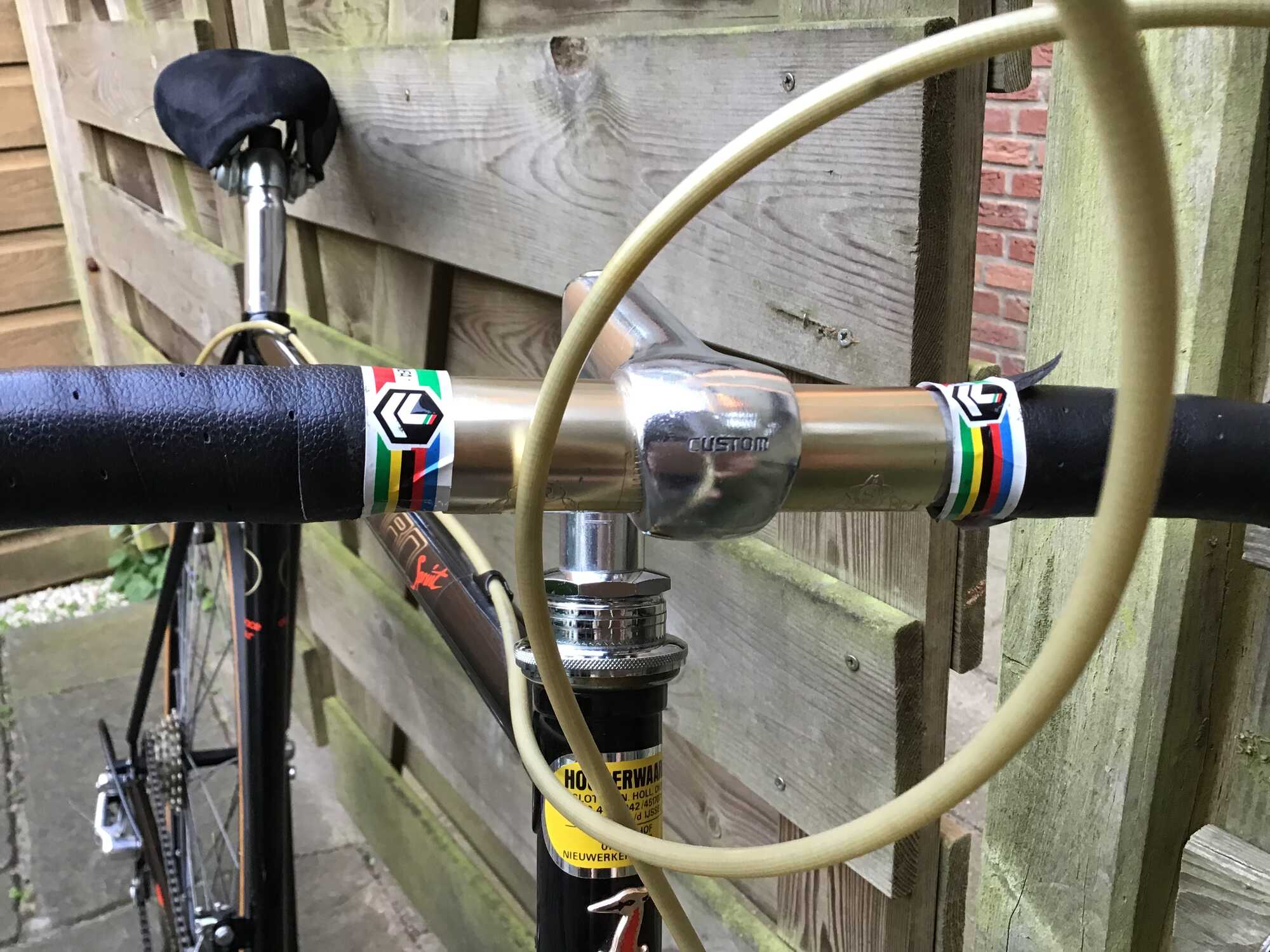 Wat een prachtig exemplaar! Complimenten. En ook die van non-fixie mag er zijn. Momenteel leg ik de laatste hand aan de restauratie van de mijne. Die was helaas helemaal niet in goede staat. Ik heb het frame en voorvork geschuurd, met primer bewerkt en daarna 3 keer met zwarte hoogglans gelakt en daarna 4 keer met hoogglans blanke lak afgewerkt. De transfers heb ik kunnen behouden, ze waren nog in redelijke staat. Nu de kabels er nog op en alles afstellen en het ouderwetse plastic stuurlint wikkelen.
