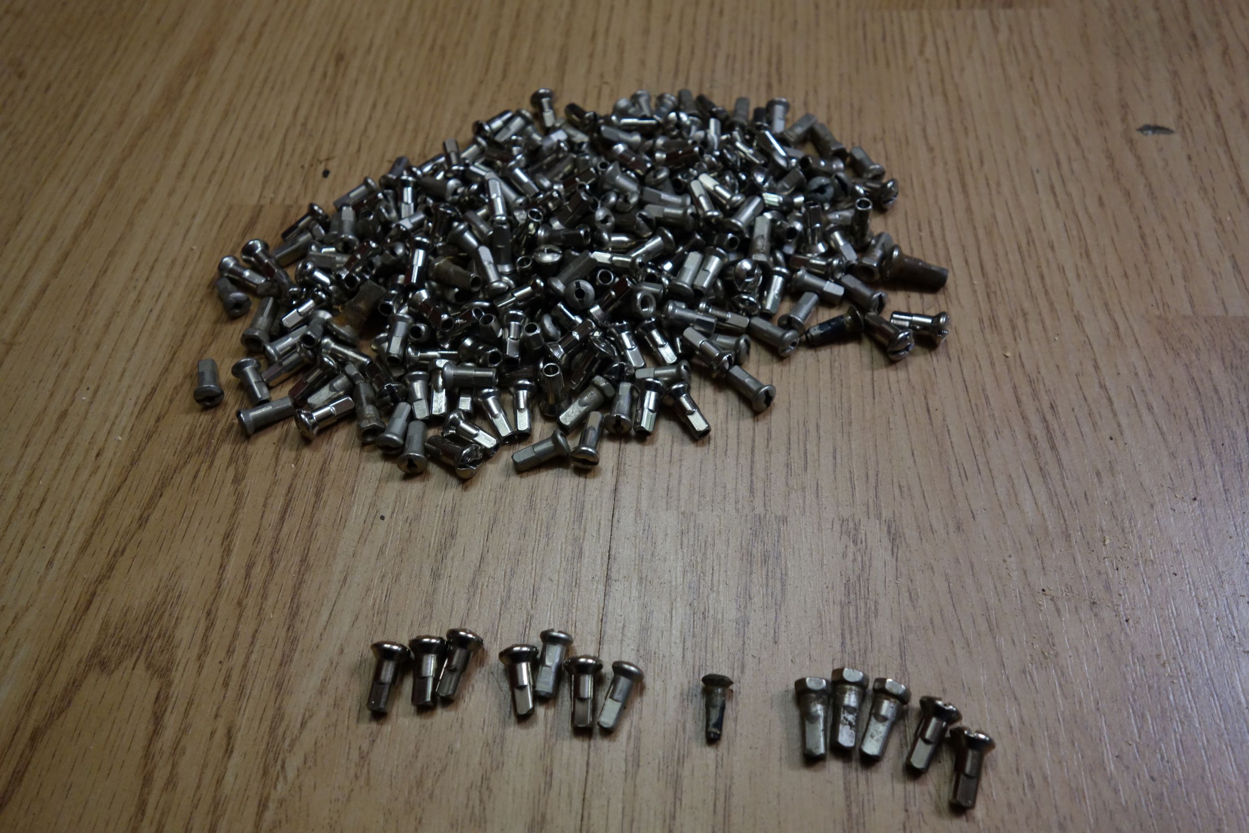 Op de foto ligt een spaak 14 nippel in het midden tussen de grotere.