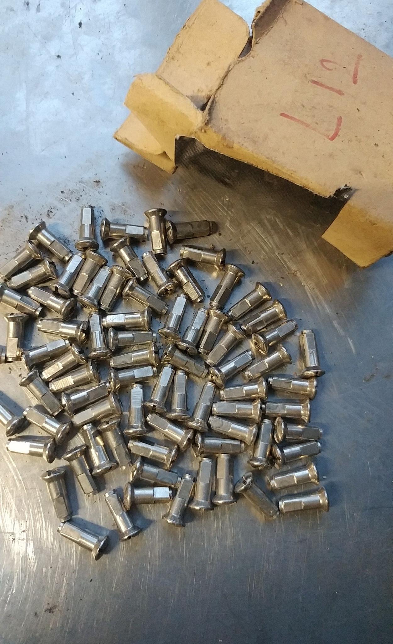 Hallo Charles, voor zover je het nog nodig hebt: ik heb nog 6 doosjes à 144 stuks spaaknippels n0. 12 van Sapim/Indian voor je en één Lemet, groet, Otto