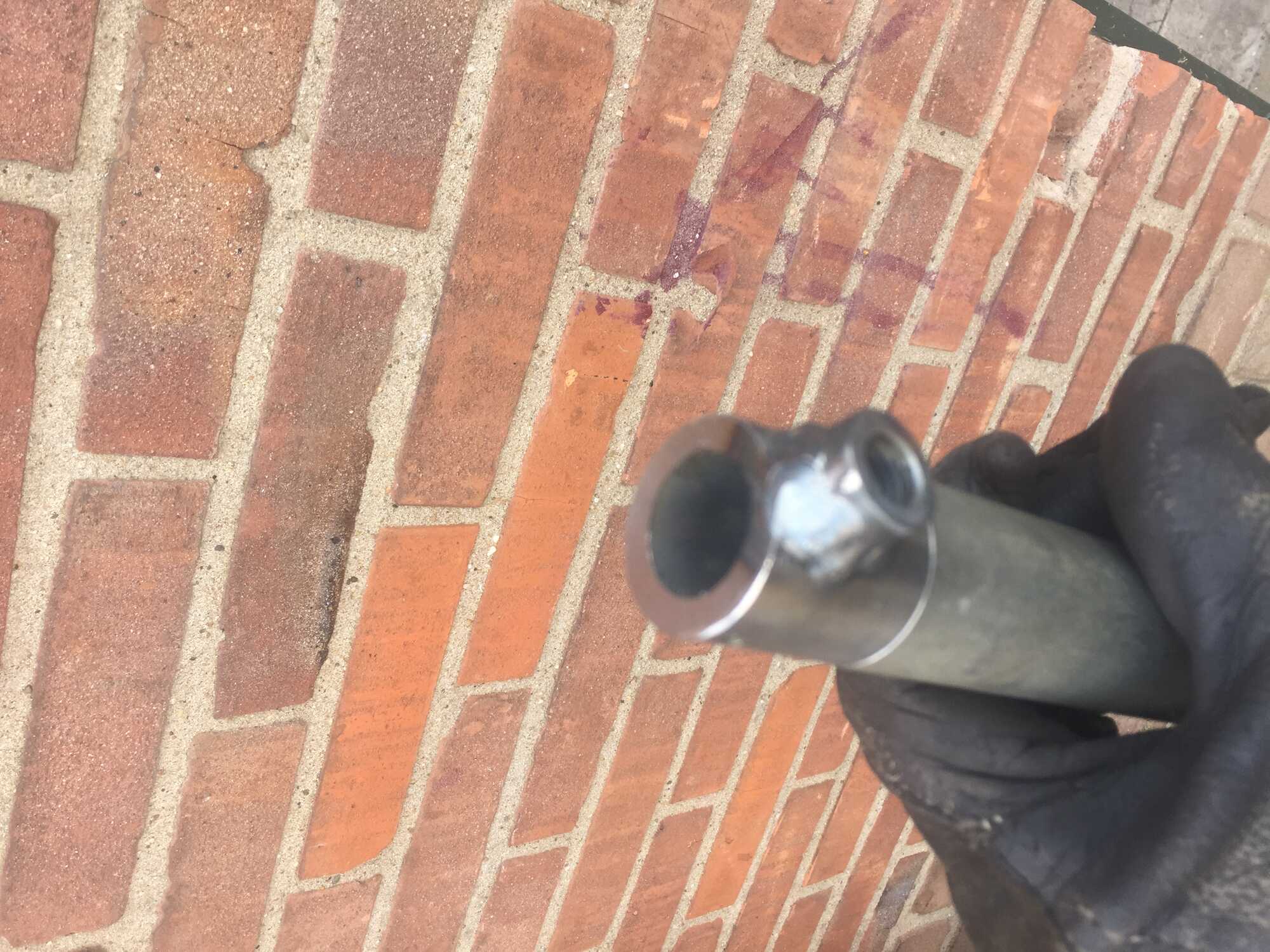 Doorboren na het lassen, doortappen van de M10 draad na het uitdraaien.
