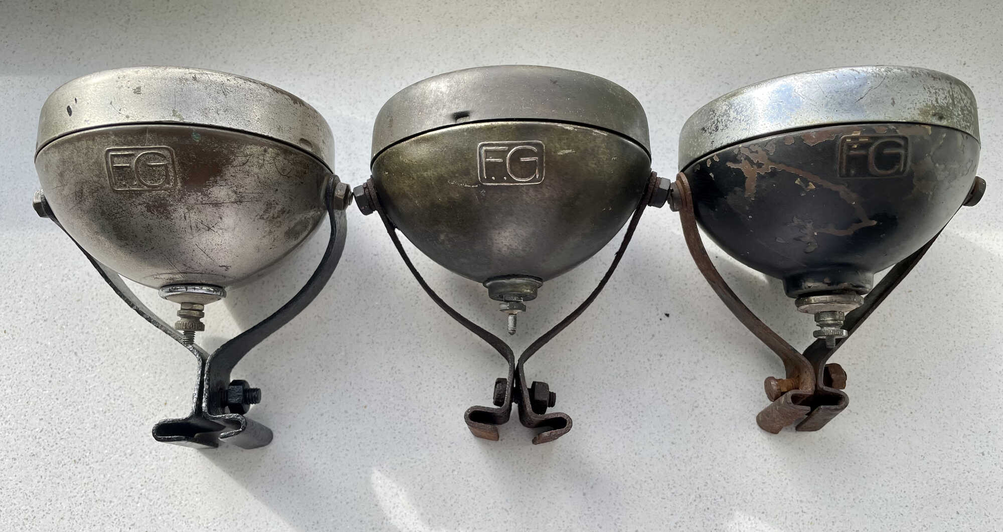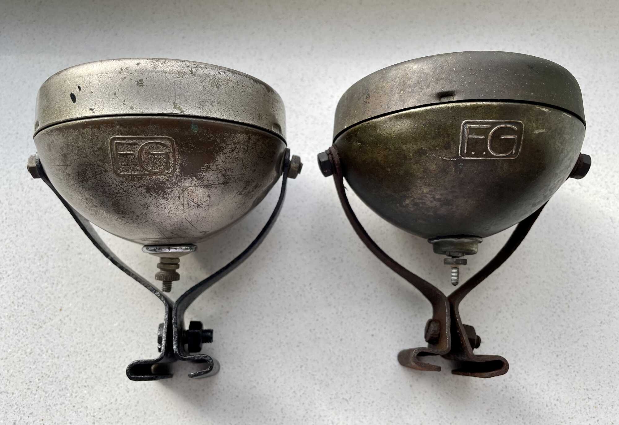En aangezien we toch in de Fongers koplampen zitten hier ook nog een mooi setje lampen uit de 2e helft van de jaren ‘30. Bijzonder groot en zwaar uitgevoerd als je het mij vraagt. Typisch euvel is dat de kijkglaasjes altijd stuk zijn.