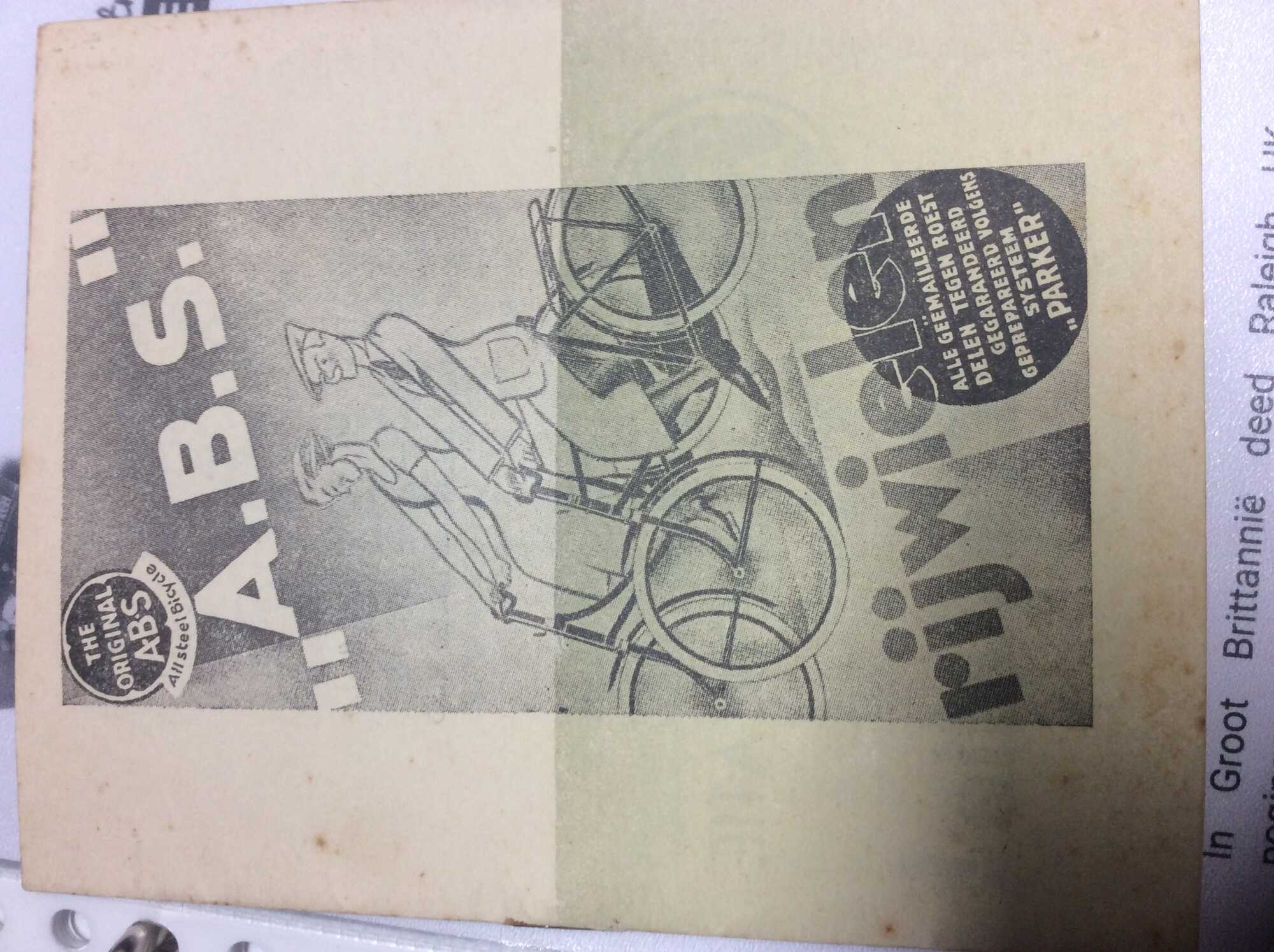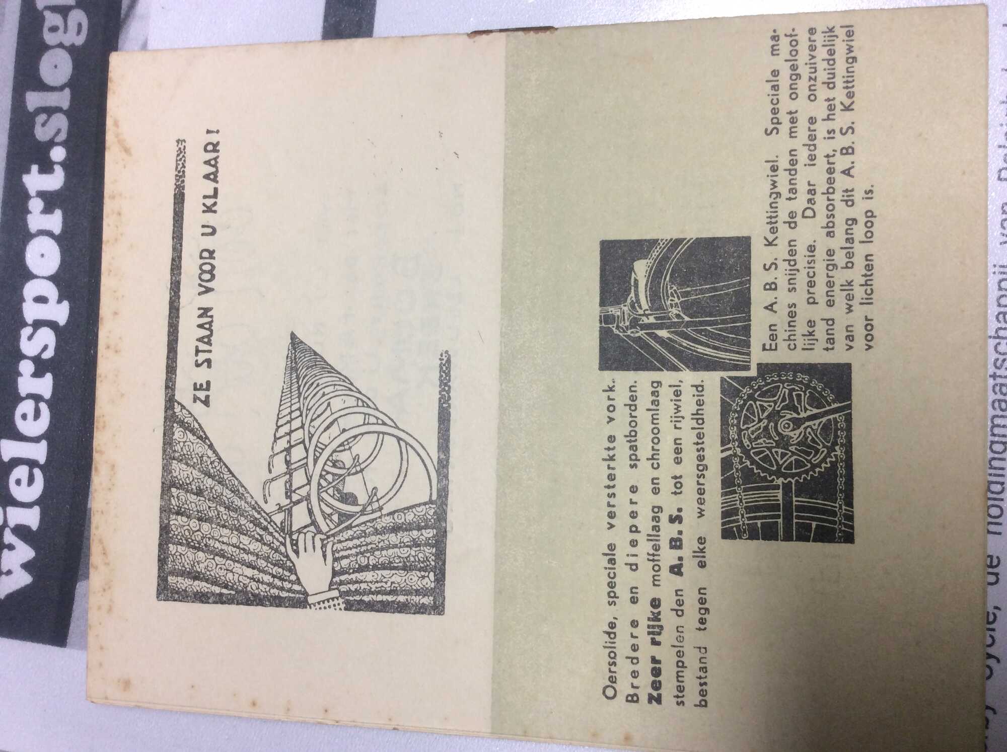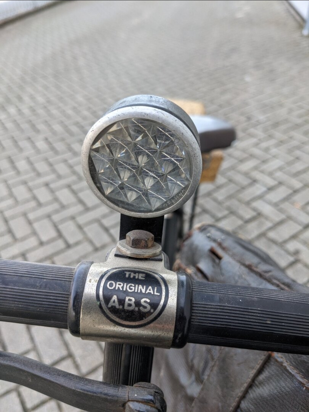A.B.S. = A. Bouma, Sneek, een voormalige fietsgrossier die dit merk voerde. Plaats eens wat meer foto's van de fiets, de trapas, het framenummer, de achternaaf, ... Het lijkt wel om een volledig gerestaureerde fiets te gaan waar iemand dit ABS-stuurnokplaatje op gemonteerd heeft. Of dat dan betekent dat de hele fiets ook echt een ABS was....?