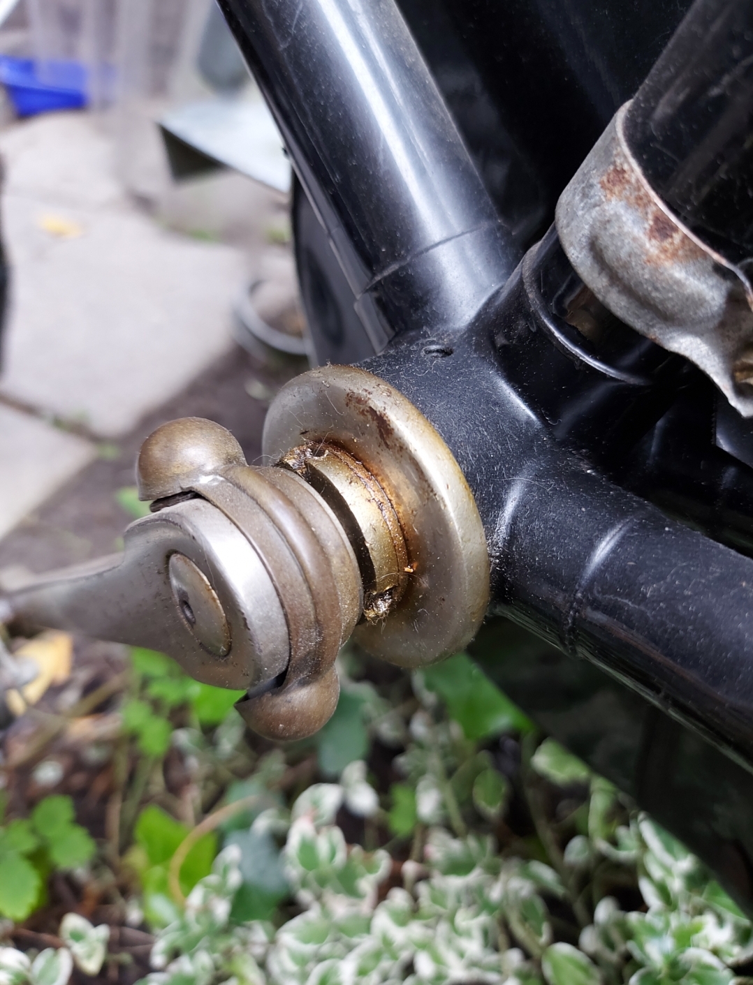 Ik heb de fiets inmiddels binnen, dit zijn een paar foto's van de naaf en trapas, het gaatje boven de as is voor olie?
