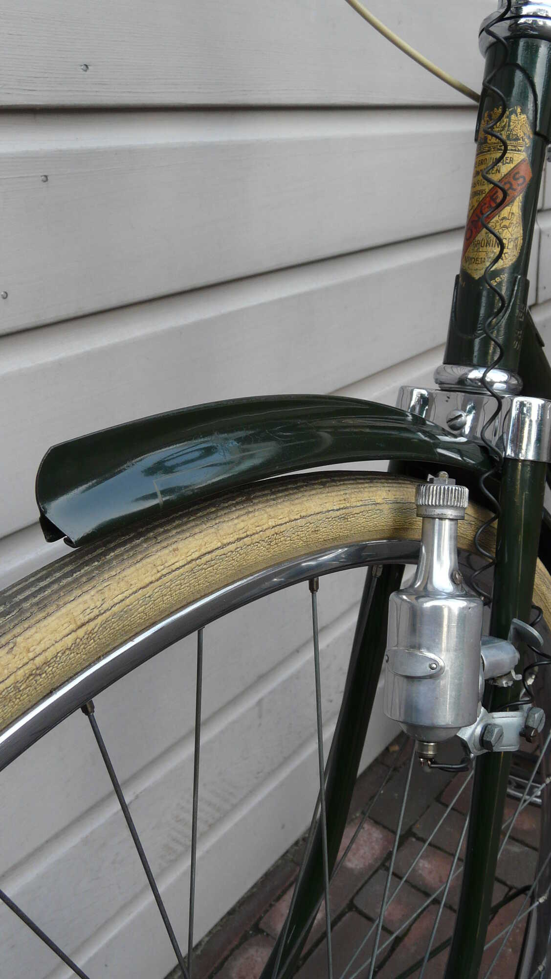 Er komt vast nog wel eens zo'n Fongers sportfiets tevoorschijn; laatst stond er nog een groene te koop op MP. Ze zijn meestal niet duur en je zou zo'n fiets dan als donor voor de gezochte spatborden kunnen gebruiken (er zijn een paar modellen originele spatborden trouwens; bijgaand plaatjes van de borden op de mijne).