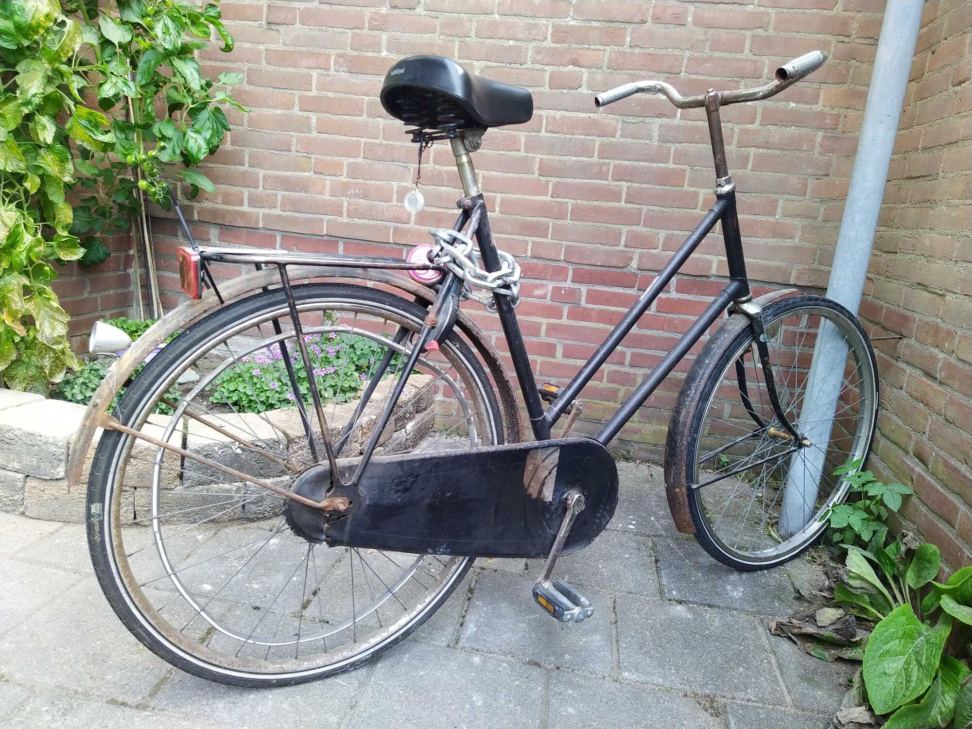 Ik heb nog een originele velg van een locomotief van deze tijd nodig, maar die op de foto is heel erg verroest. Het achterlicht is ook nog origineel. Heb je deze fiets nog?
