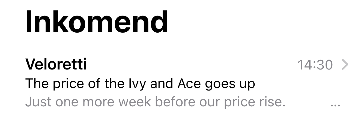 Het zijn interessante tijden met fietsmerken (in dit geval Veloretti) die e-mails sturen met de melding dat ze hun prijzen gaan verhogen…