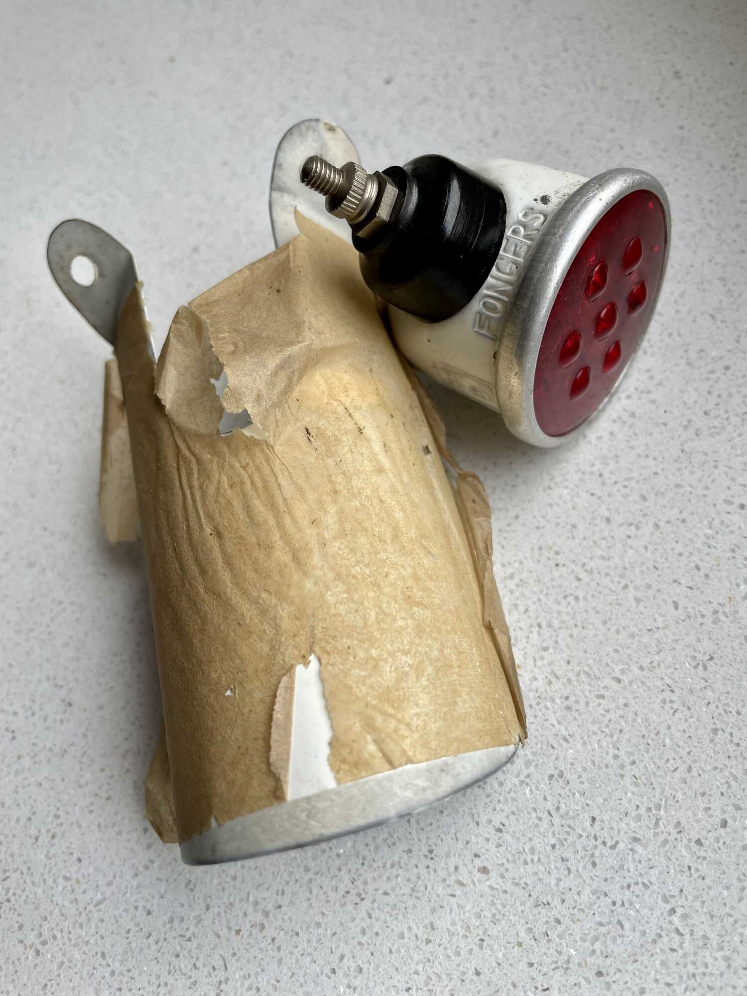 Zit er geen rijkskeur op het achterlicht ? Mischien dat we de reflectoren niet meer zien, omdat die na 1938 allemaal vervangen zijn door electrische achterlichten. Wel weer en vondst !