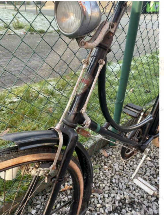 Belgische fiets uit Tielt, niks bijzonders. Frame wscl deels doorgezakt. achterwiel vermoedelijk niet origineel.