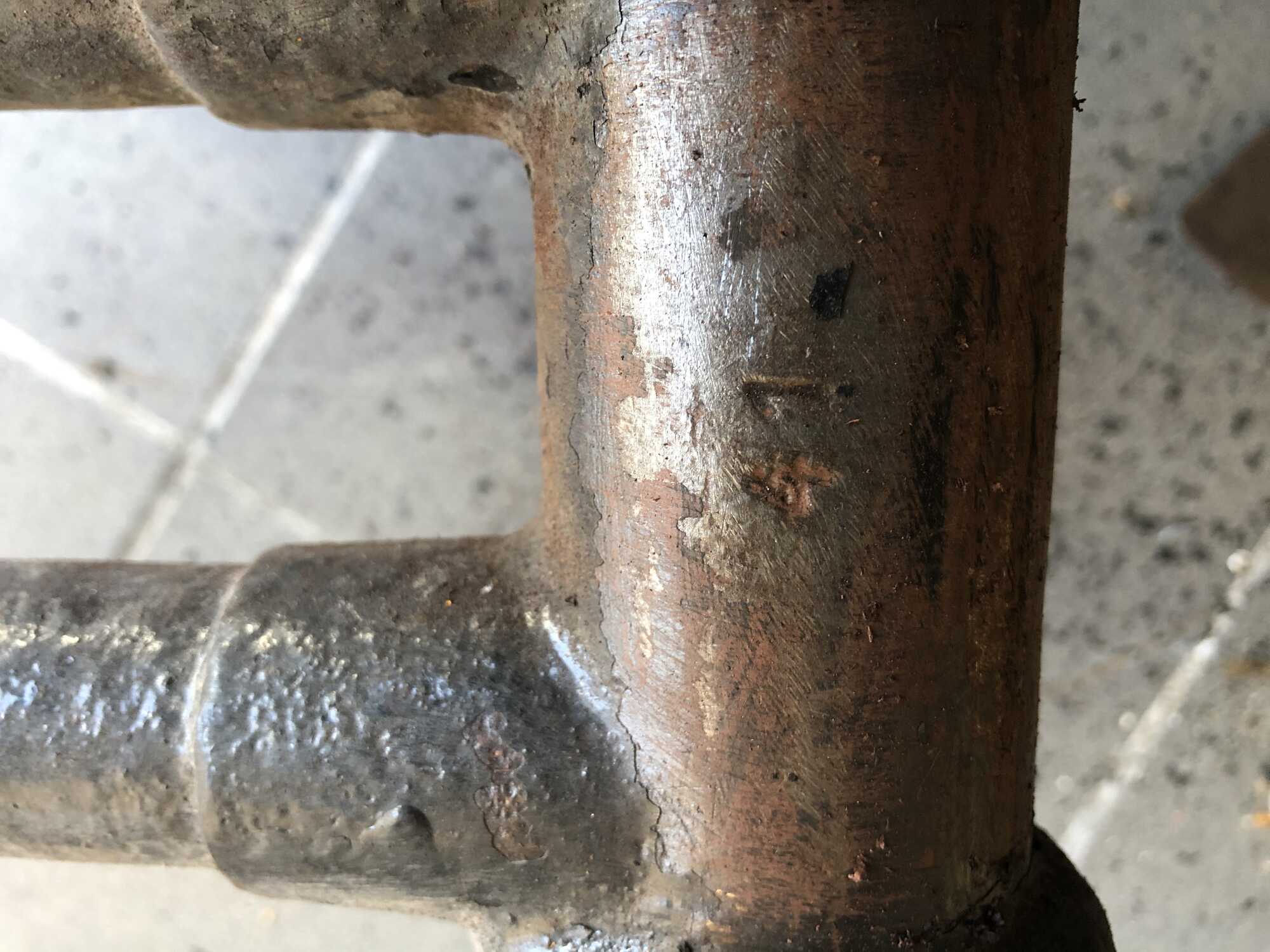 P.s. de oranje grondlak die je ziet is loodmenie. Giftig dus. Dus geen stof van inademen, en ook niet in de grond laten verdwijnen. Als je dat wilt verwijderen, het beste met afbijt, en dan naar chemisch afval brengen.