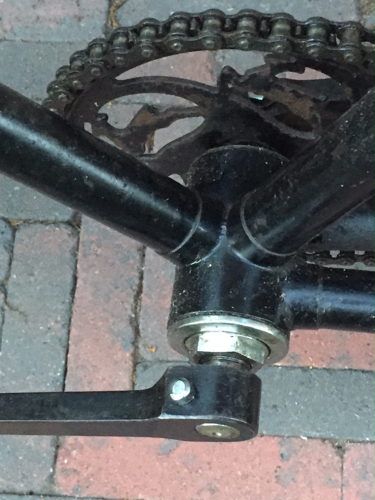 Omdat de fiets als pakket onderdelen door mij is gekocht was ik in de veronderstelling dat het kettingwiel en de trapas weliswaar in het frame pasten maar er niet bij hoorden.