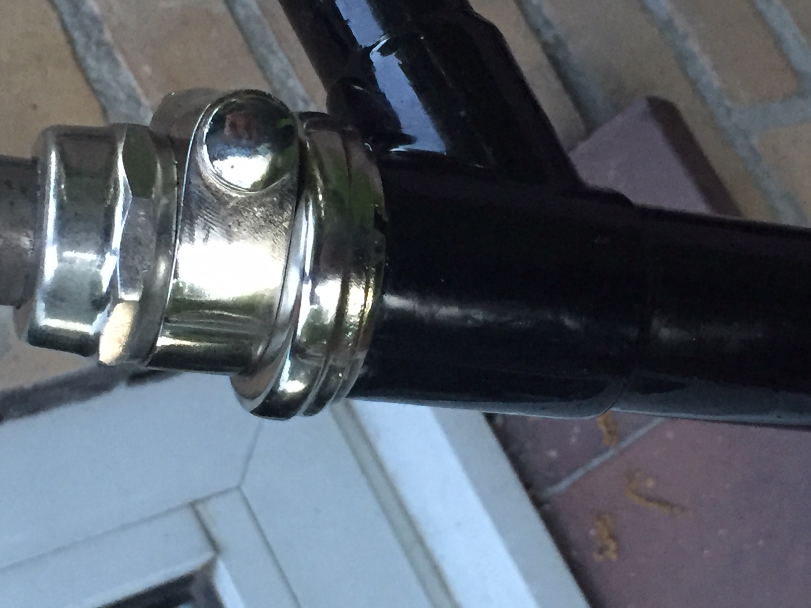 Die bout was niet meer vast te draaien en is aan de binnenkant als een klinknagel gesmeed.