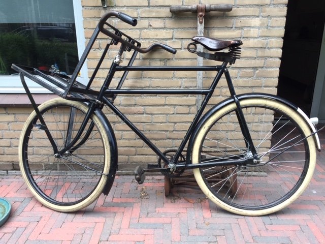 Het verhaal wil dat er geen vraag meer naar de transportfietsen was en dat ze al twee jaar niet meer in catalogus stonden. Er lagen echter nog wel onderdelen die toen ‘maar bij elkaar gevoegd zijn’ door leerlingen van de opleiding rijwielherstellen.