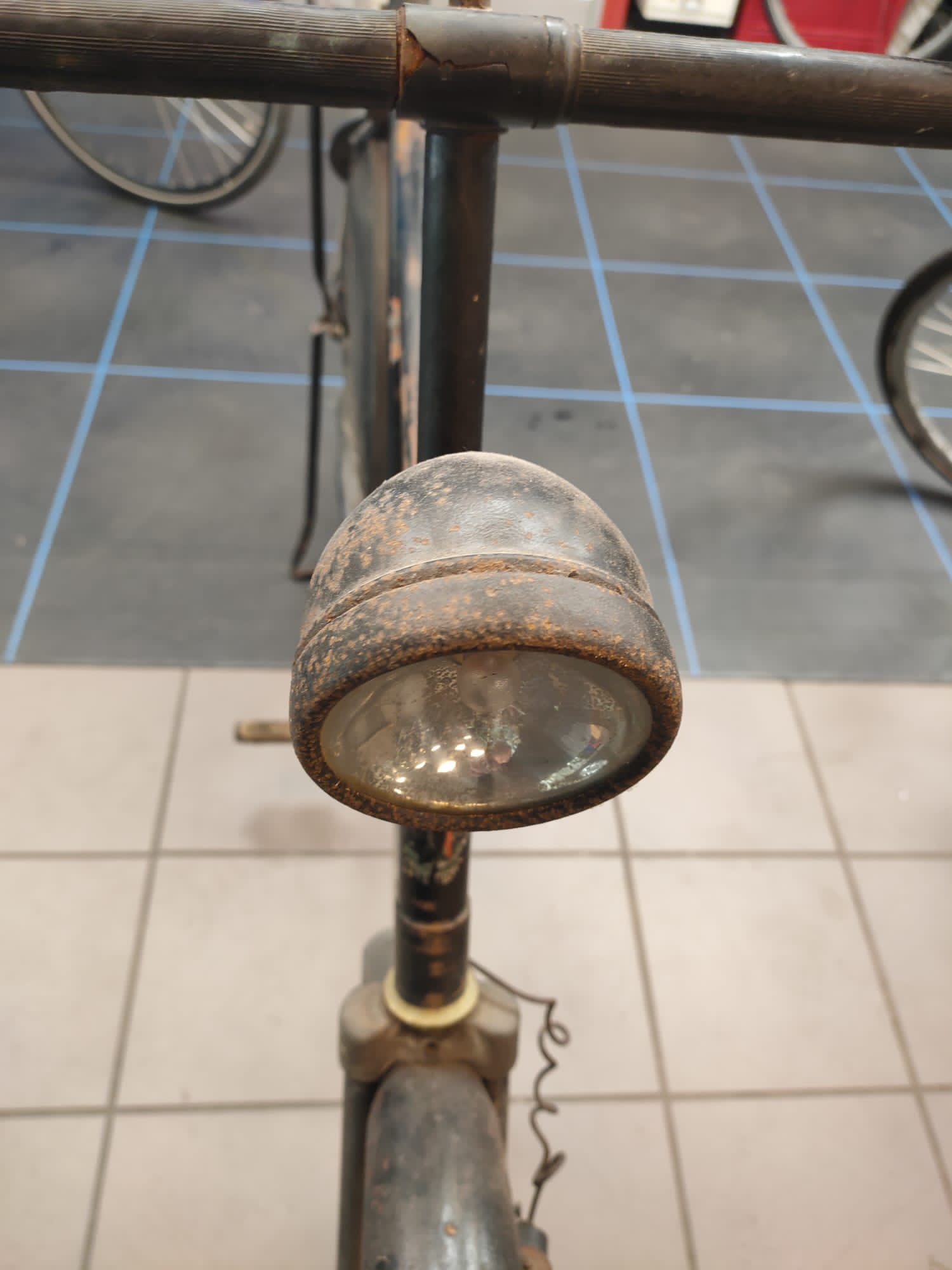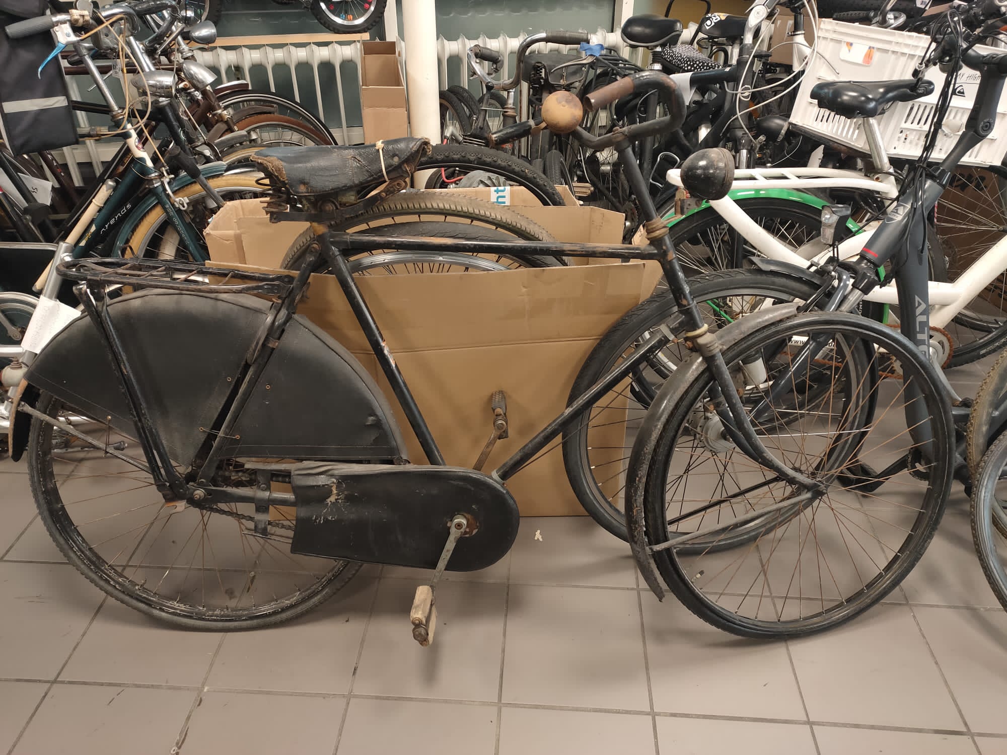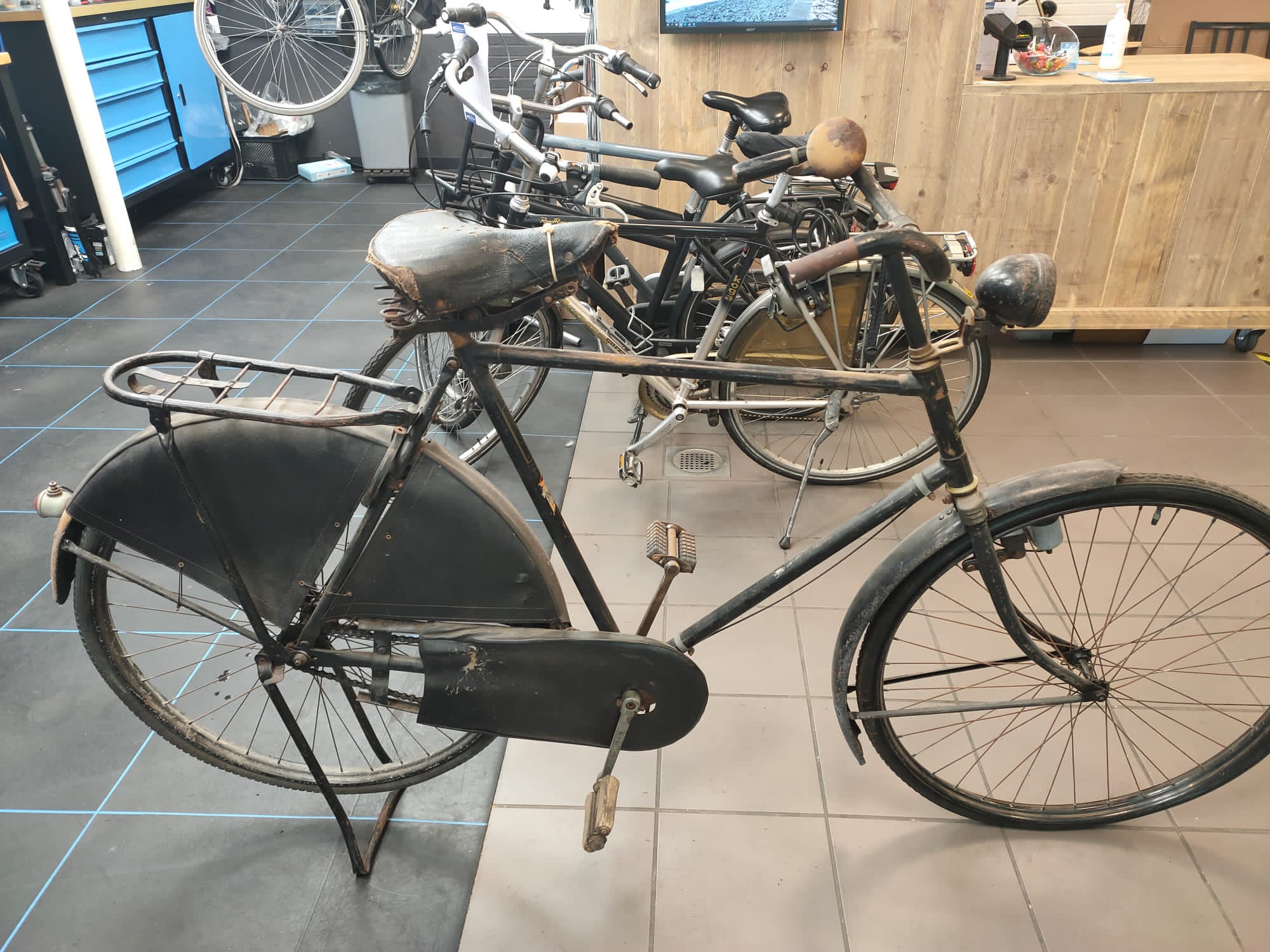Mijn broer heeft een fiets gekocht die sinds de tweede wereldoorlog in Den Haag op een zolder heeft gestaan. De fiets ziet er voor zijn leeftijd nog goed uit. Alleen weten we niet welk merk het is en van welk bouwjaar. Hij is in ieder geval vooroorlogs. Wie kan ons helpen? Zie foto’s voor details.