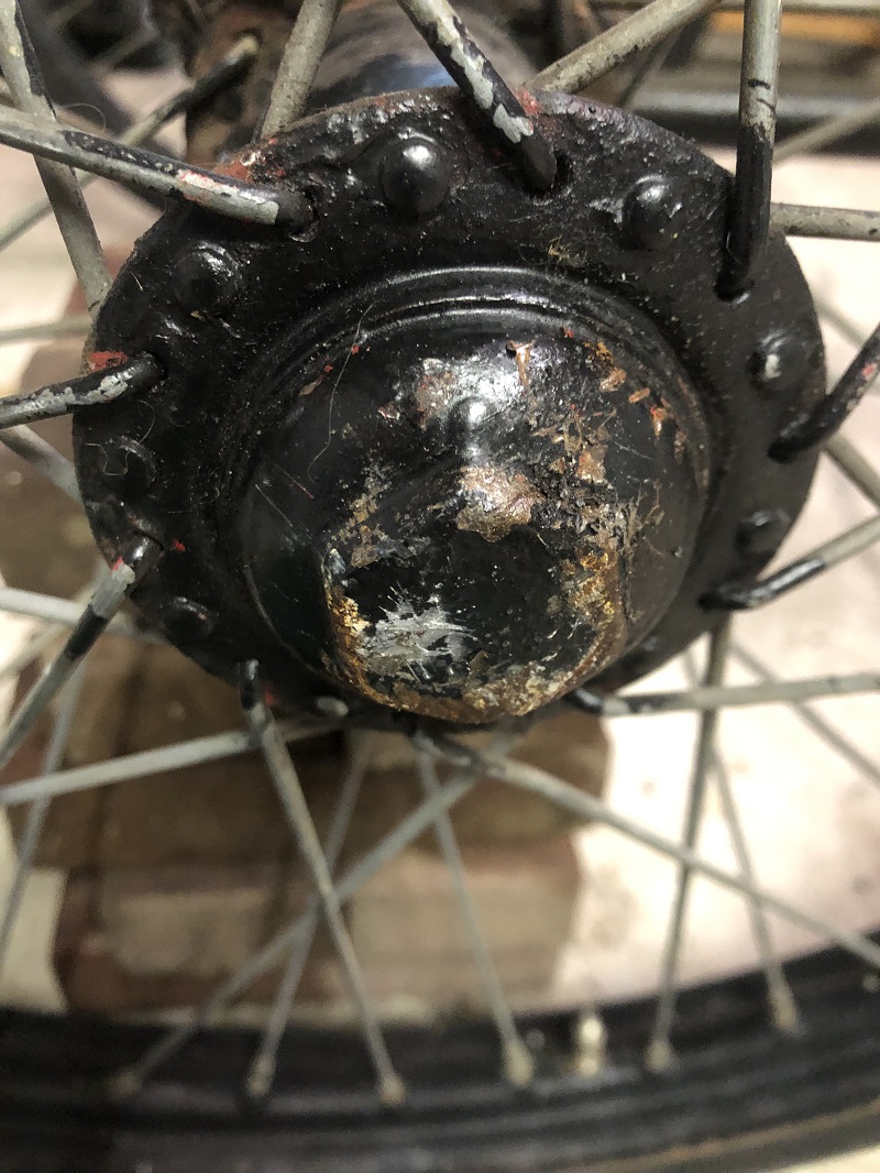Hij is een beeetje beschadigd. Maar nog zonder mer bruikbaar als hij eenmaal weer gelakt is.