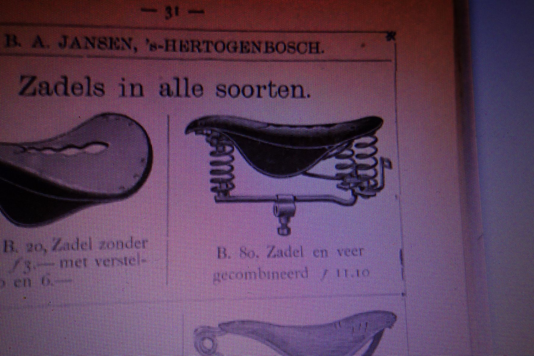 Ik denk dat het zadel er een van Brooks is. Een vergelijkbaar zadel staat in de 1891 catalogus van B.A.Jansen.