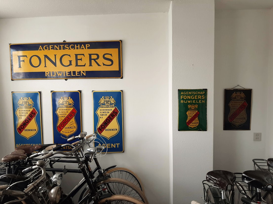 Twee nieuwe items om te laten zien: het bolle groene Fongers bord uit 1924 en een tot dusver onbekend affiche over Fongers banden.