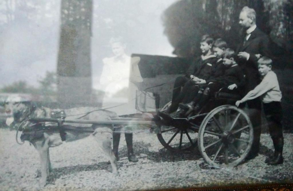 En bij deze de foto waar ik over sprak. De heer achter de wagen is Dr. J.W van Calcar met zijn 4 zoons en dochter (die helaas slecht zichtbaar is door de weerkaatsing van het licht). Prachtig toch?