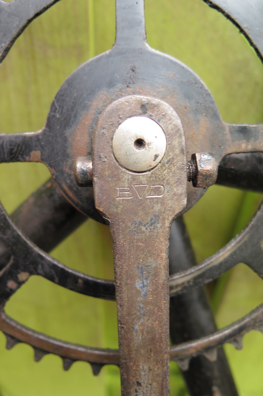 Mijn fiets heeft volgens mij hetzelfde balhoofd, dezelfde vorkkroon, eenzelfde trapas en dezelfde letters ingeslagen op de crancks. Daar staat met zekerheid BVD ingeslagen.