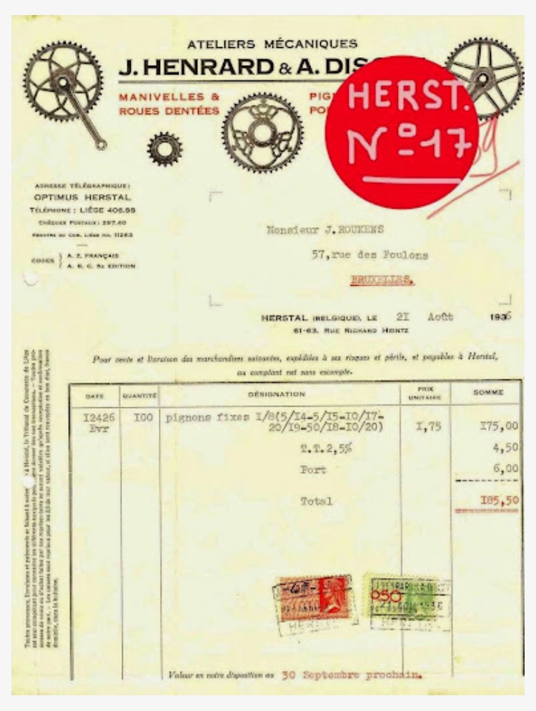 Het stempel D-H in het tandwiel staat voor Jean Henrard en Alphonse Discry.