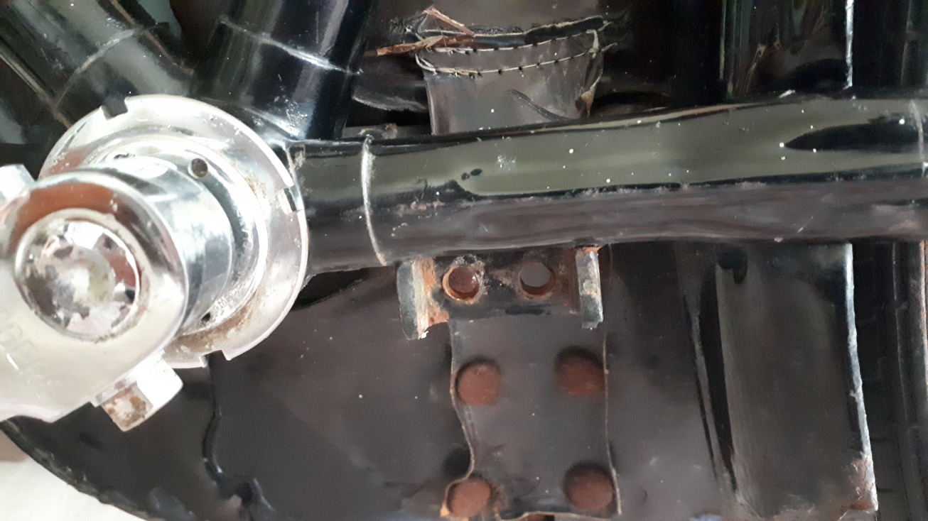Bevestiging aan het frame is aangelast.