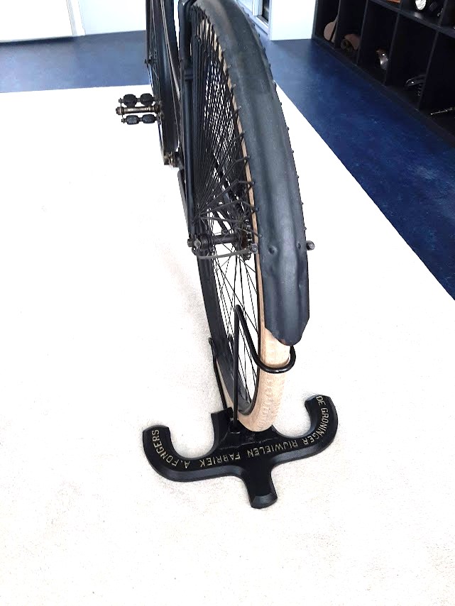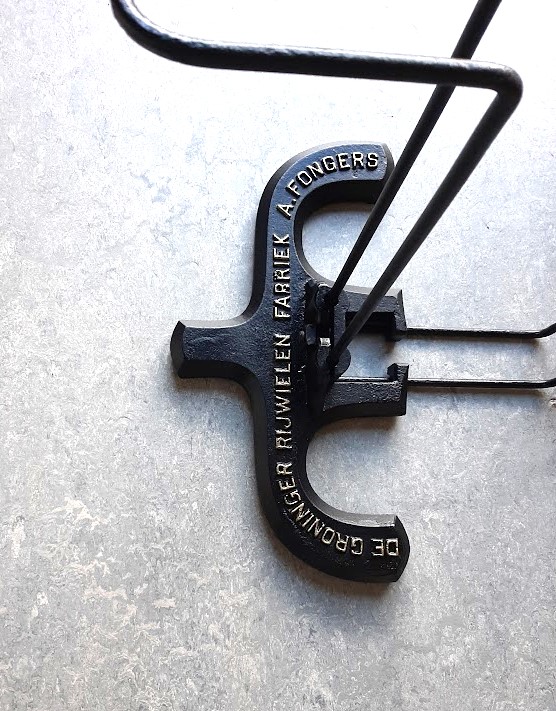 Fongers gebruikte deze standaards vanaf 1898 (zie foto damesfiets in toonzaal dat jaar) en is daar waarschijnlijk tot ca. 1908 mee doorgegaan (daarna kom je ze niet meer tegen op foto's). Er zijn twee versies van in omloop, een met letters met schreef en een met schreefloze letters. De standaards zijn in opdracht gegoten, want ze zijn er ook met andere merkopschriften, zoals Stokvis.
