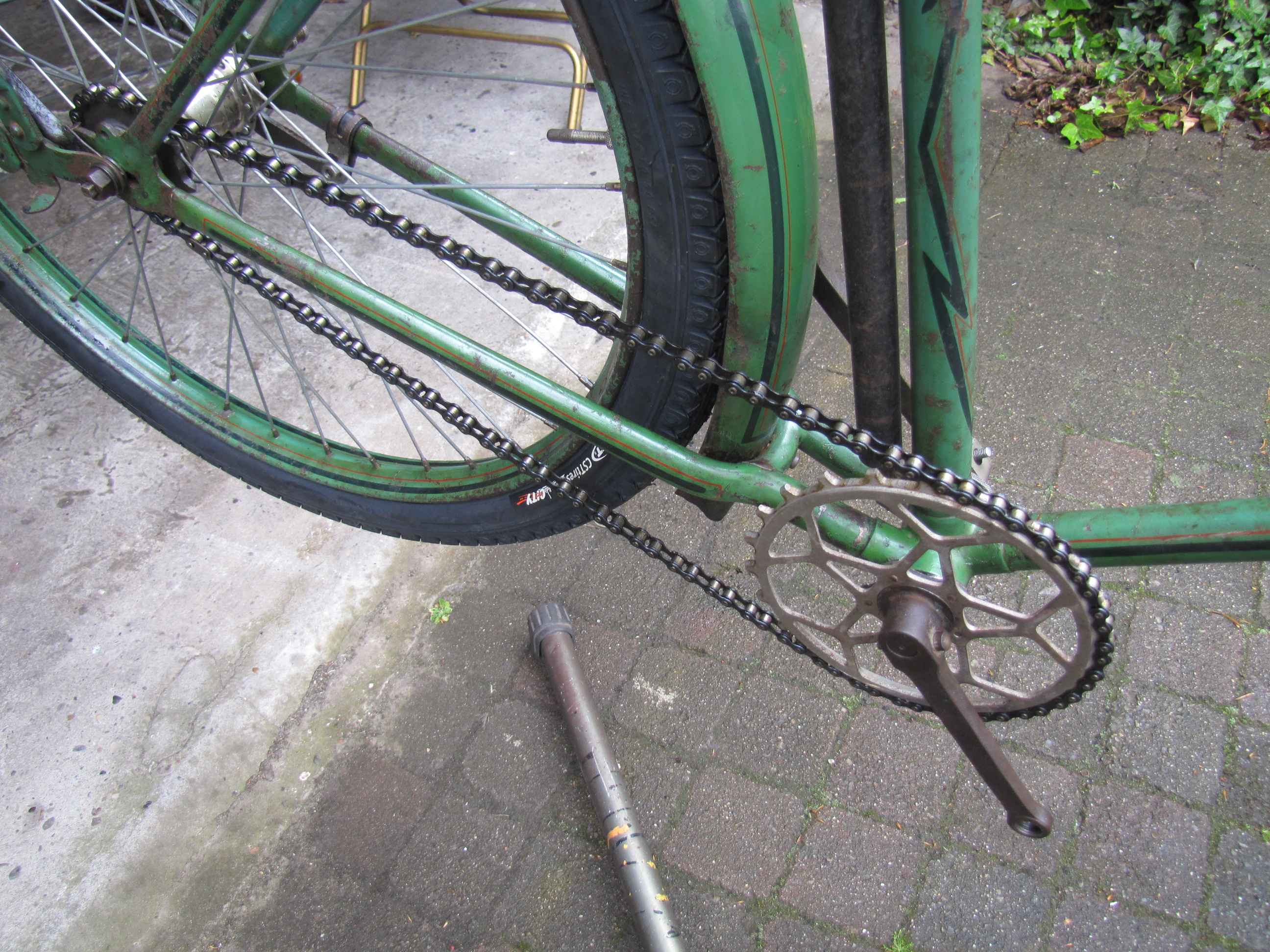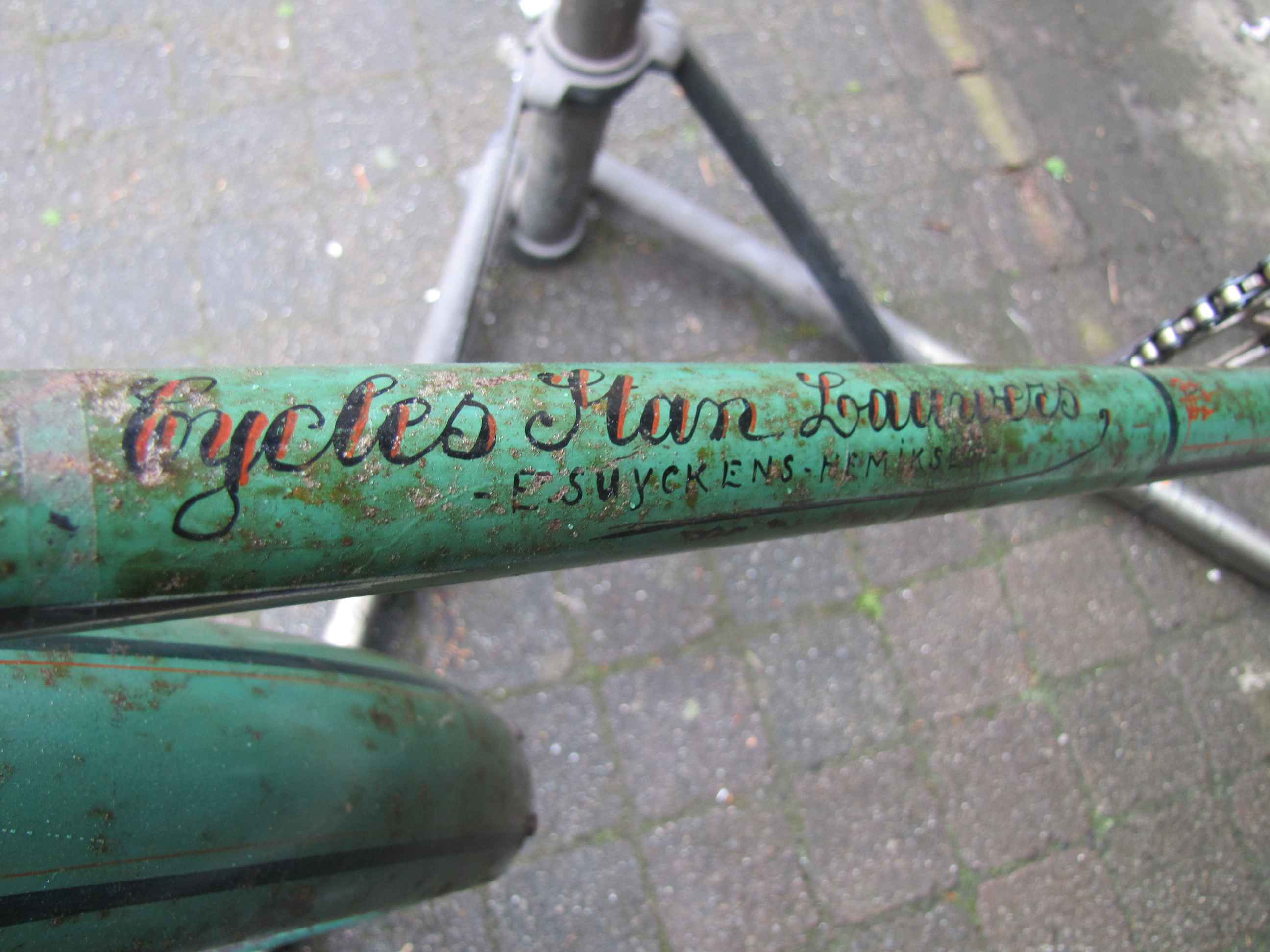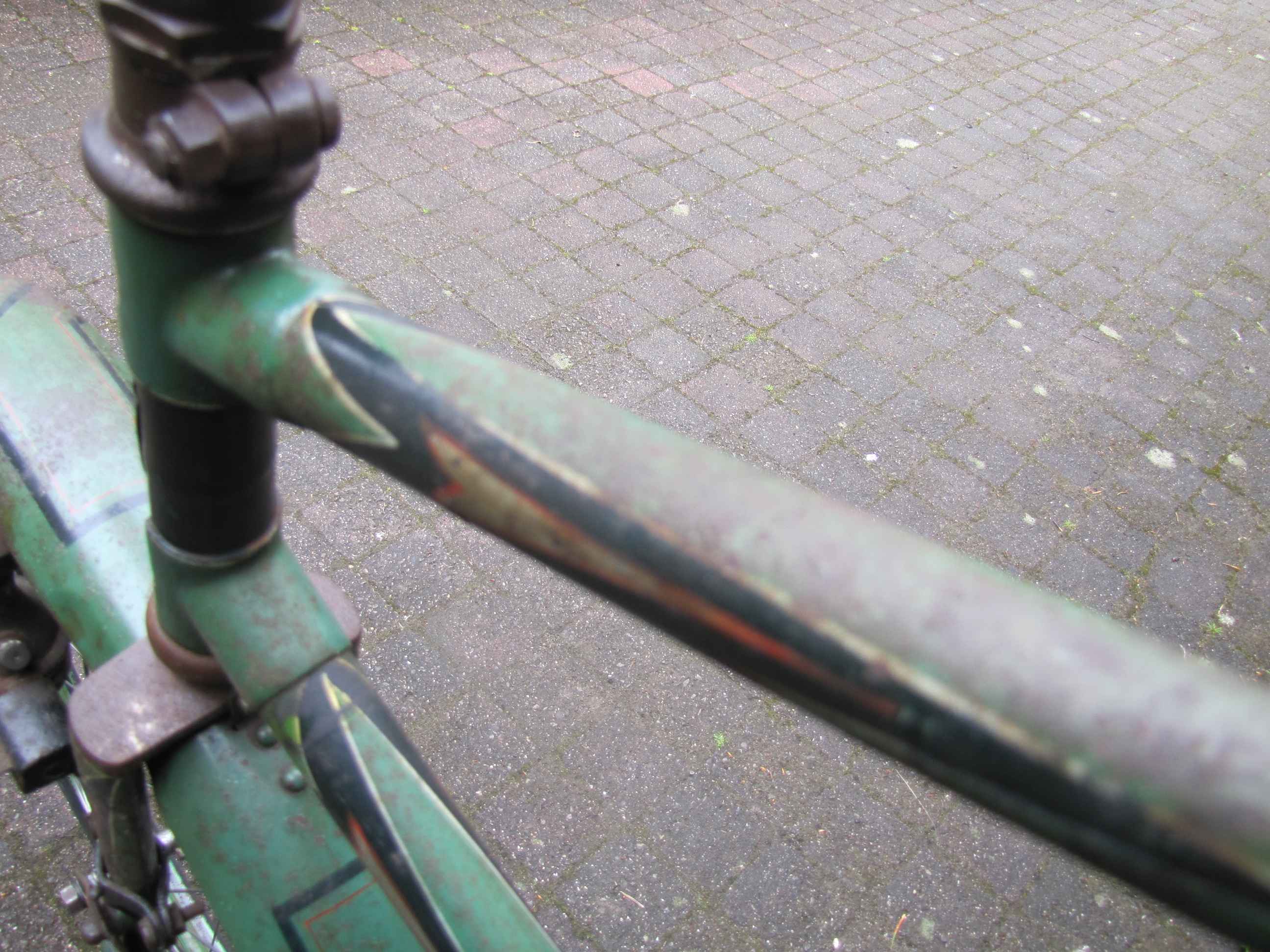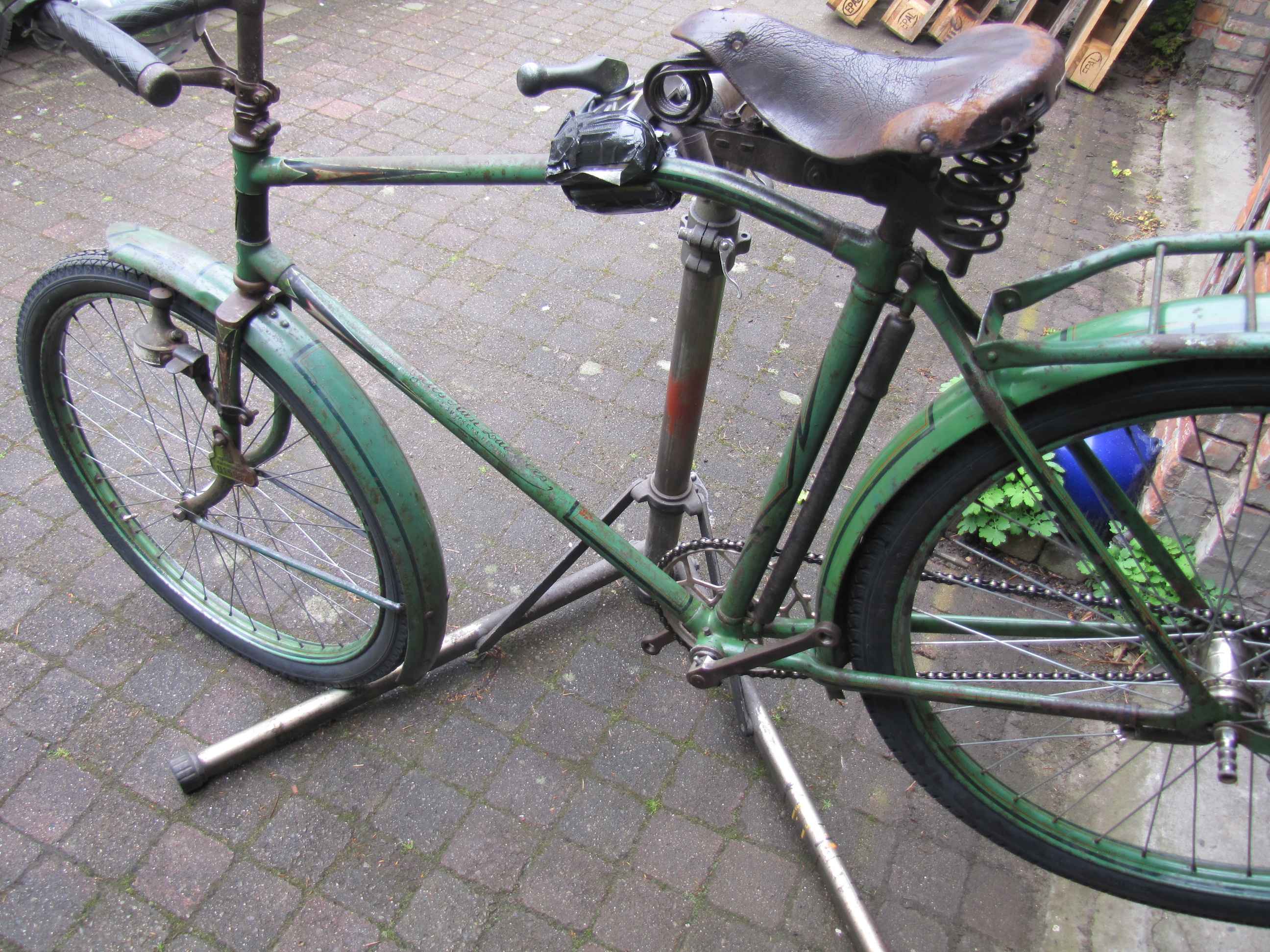 Hier de vooroorlogse fiets vermoedelijk bouwjaar 1932 of jonger, afgaande op datering trapas en naven.