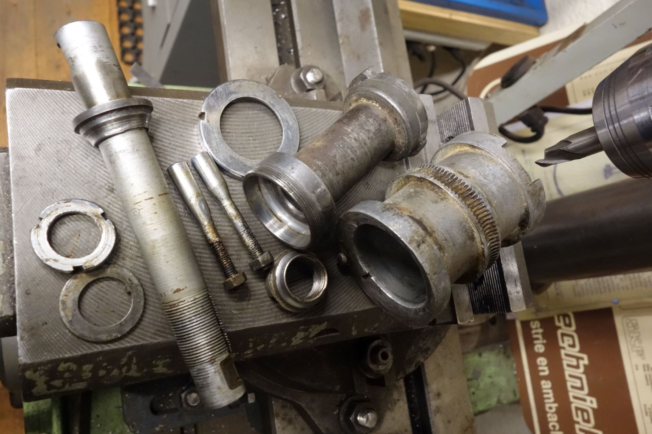 de ronde contramoer met vierkante hapjes voor de sleutel.