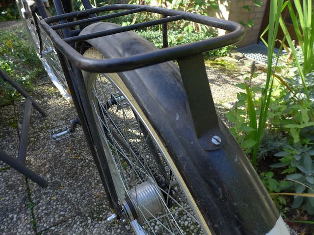 Dit is bepaald geen transporter en op de meeste franse sportfietsen uit die tijd, zitten vergelijkbare dragers nog op z'n plaats. Gevalletje pech, dus. Overigens had de Fongers HS uit 1950 ook zo'n filegraan dragertje, gemaakt van best stevig buismateriaal.