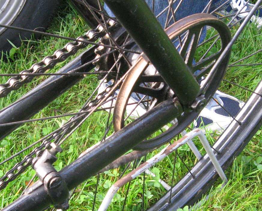 Ja, naaf-bandremmen zijn in die vroege periode vrij algemeen toegepast op tricycles en ook wel eens op een safety.