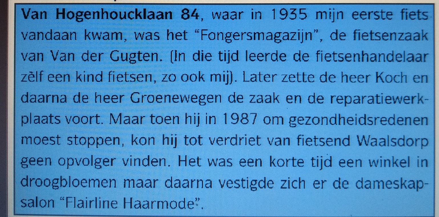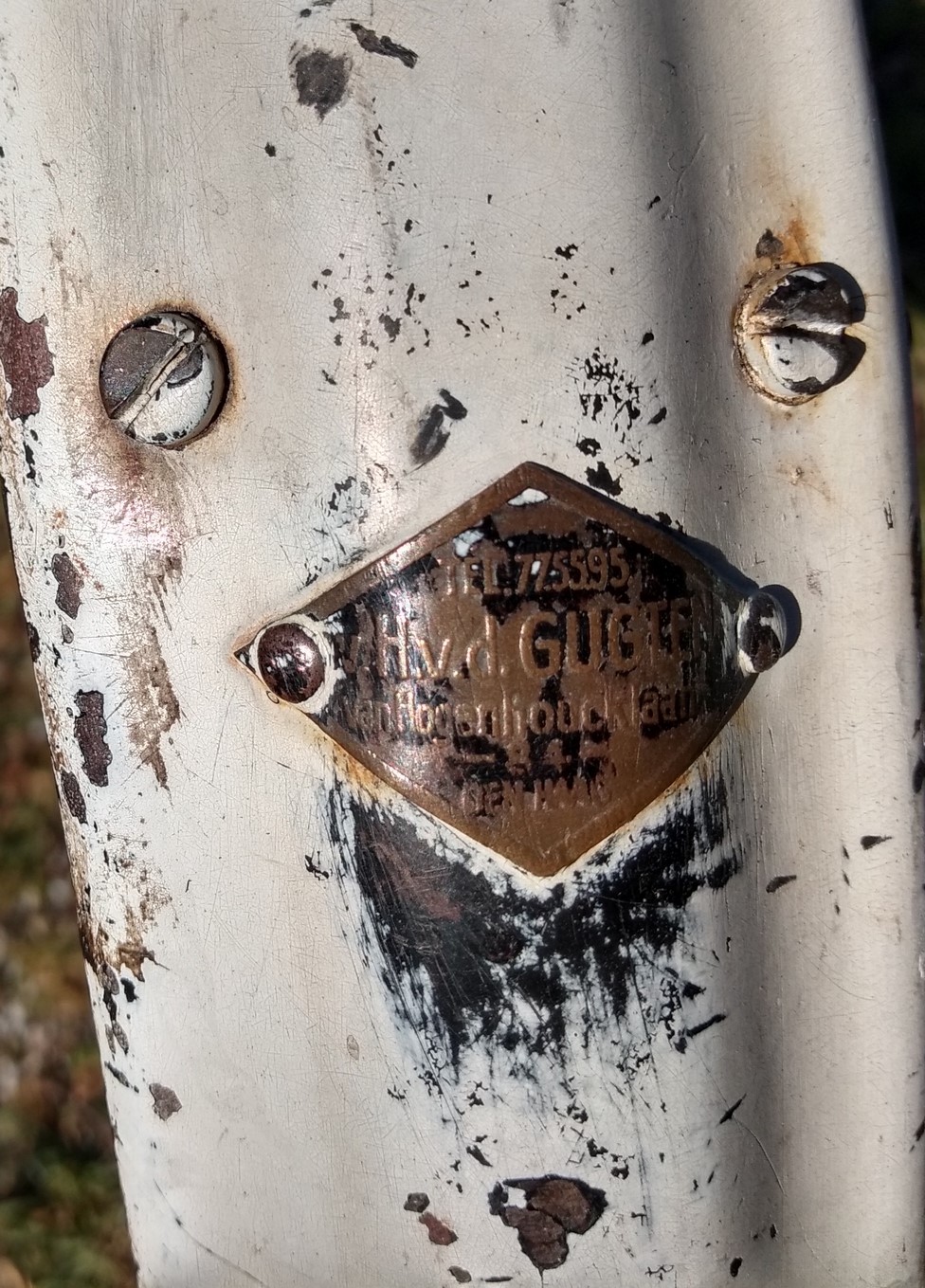 Op mijn Fongers D55 uit 1933 zit dit dealerplaatje van rijwielhandel W.H. van der Gugten , van Hogenhoucklaan 84 den Haag.
