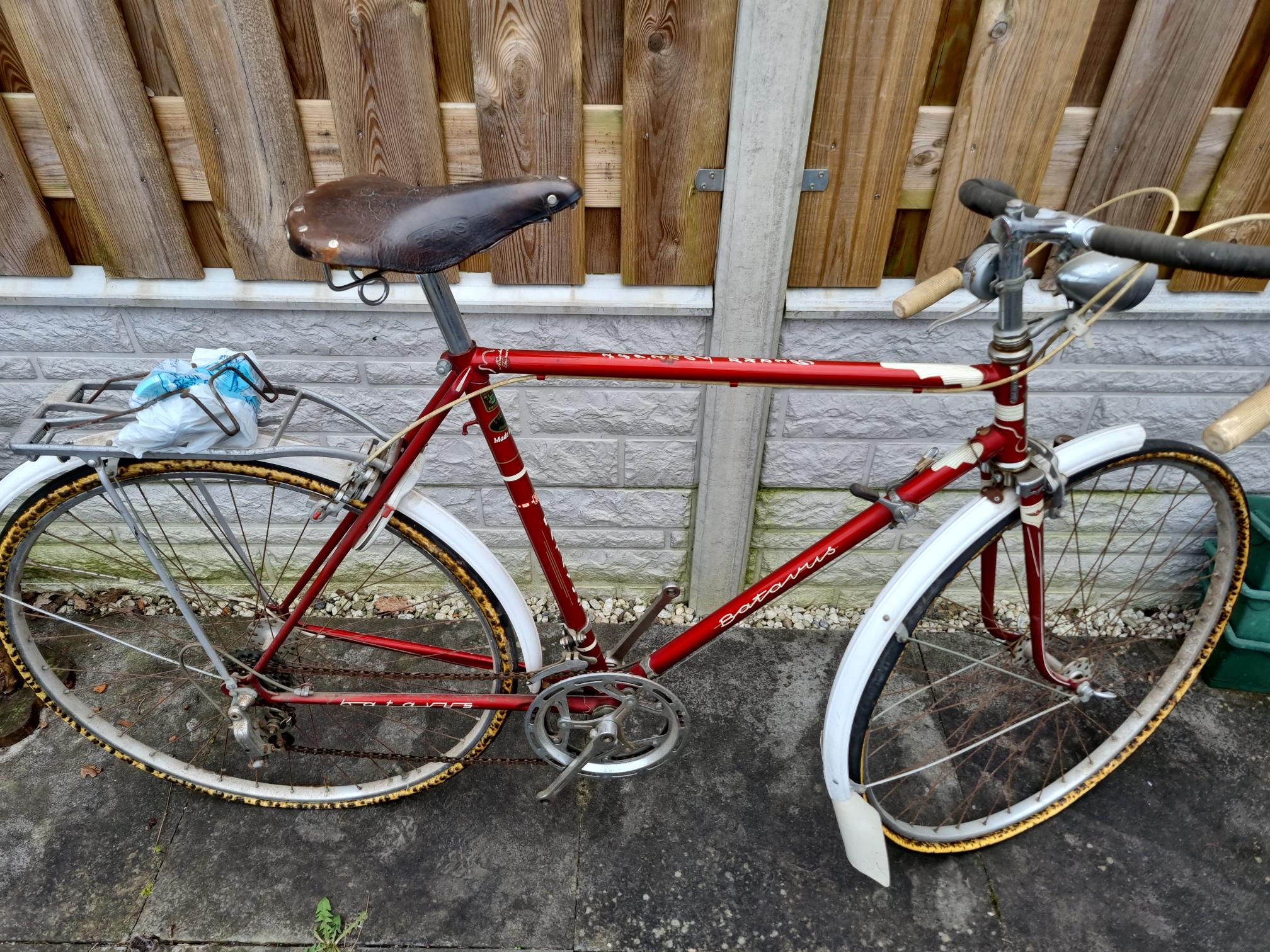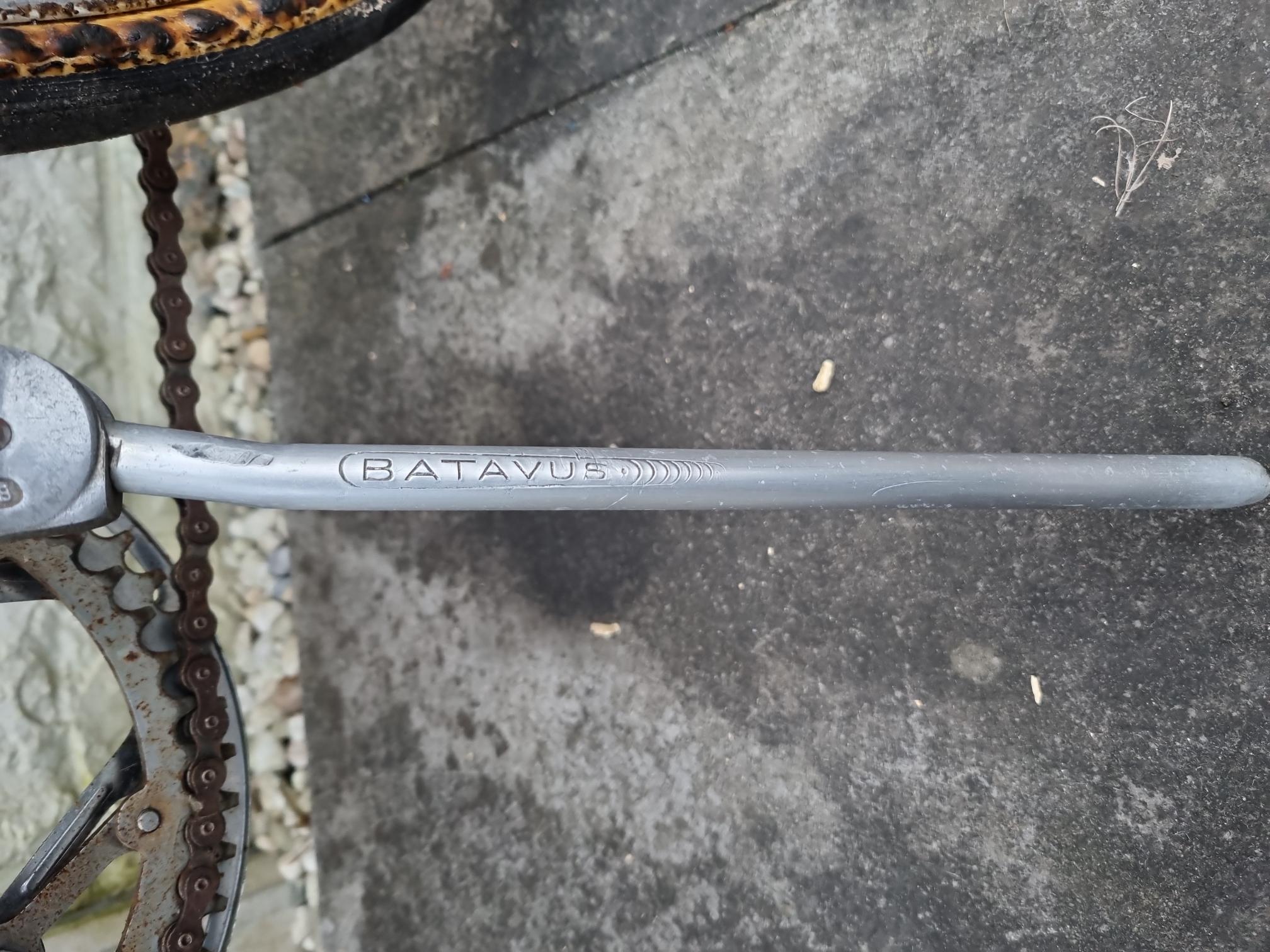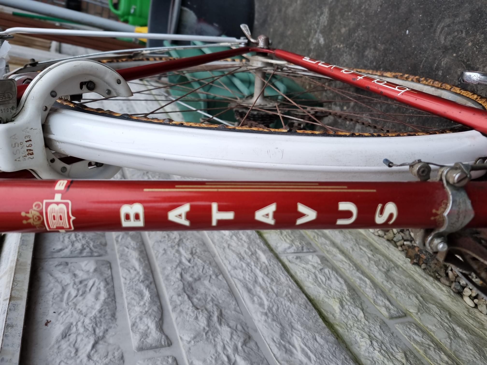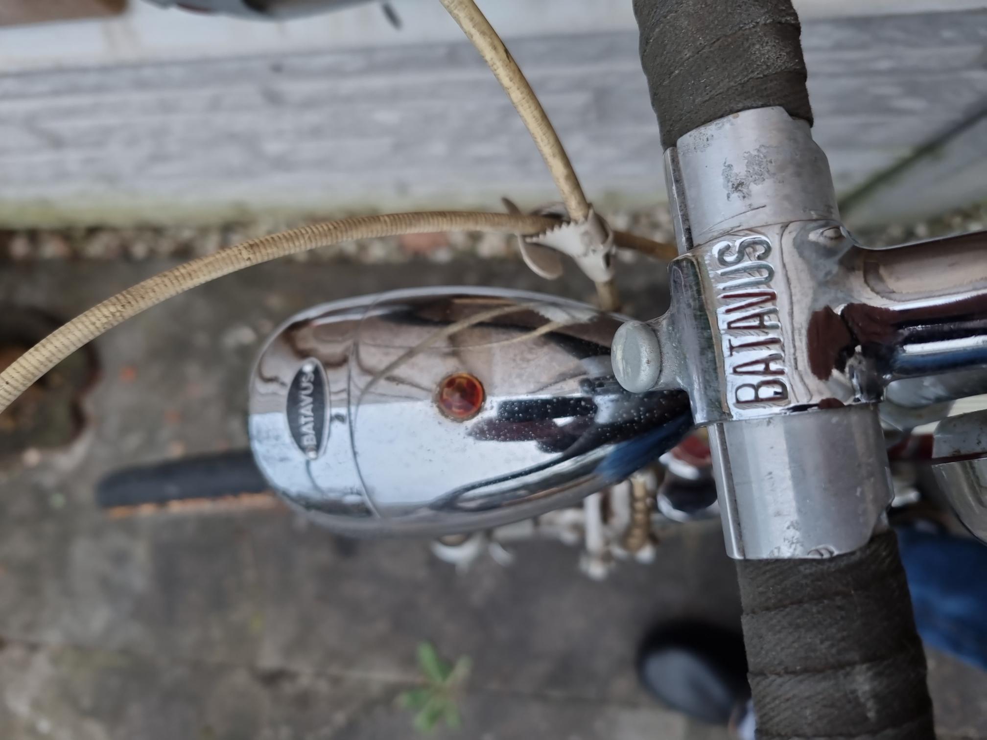 Ik heb de fiets afgelopen vrijdag 8 maart opgehaald. Het is een erg leuke fiets en ik ga deze zeker opknappen. De handvatten aan het stuur zijn ook wel apart! Leuk al die originele details aan de fiets zoals het stuur, de koplamp en de standaard met het Batavus merk. Ik heb nog wel een vraagje: de banden zijn zoals te zien niet meer helemaal in goede staat